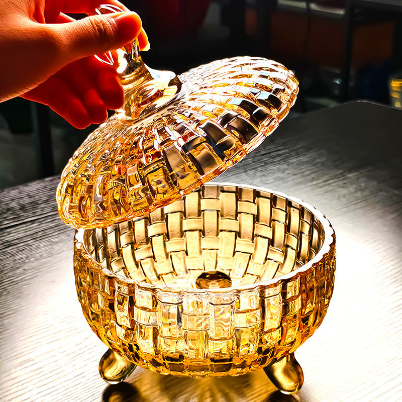 水晶玻璃碗带盖透明糖果罐高颜值水果盘容器首饰盒糖缸收纳盅器皿
