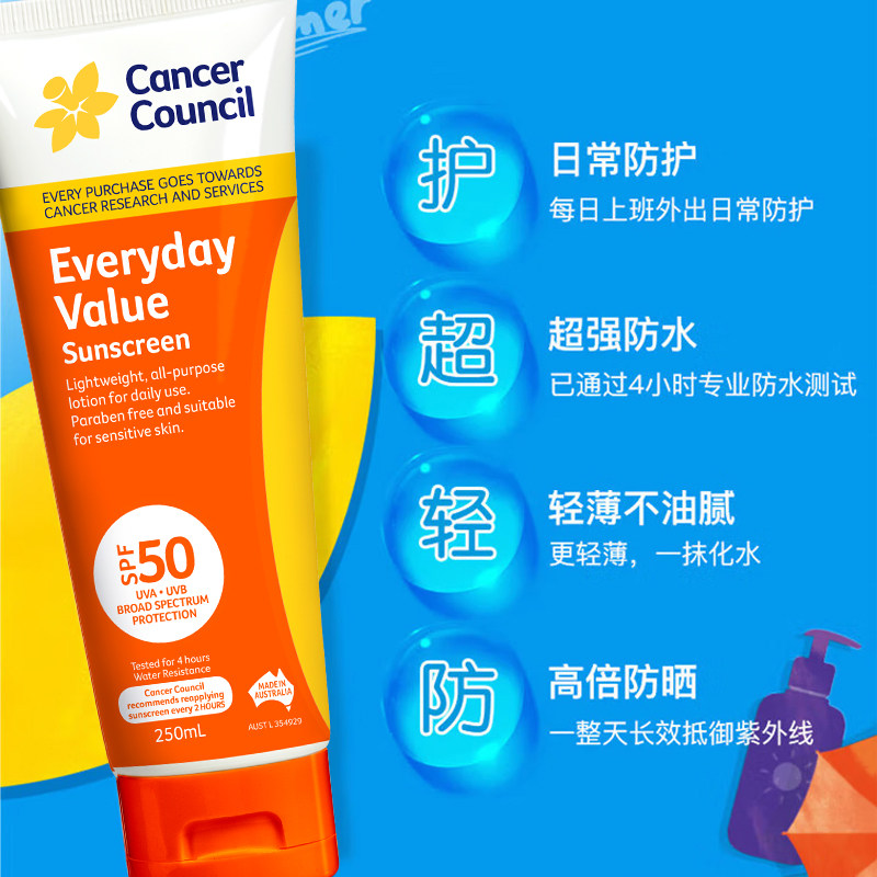 澳洲CancerCouncil澳美皙日常通勤防晒霜SPF50大容量防晒乳250ml