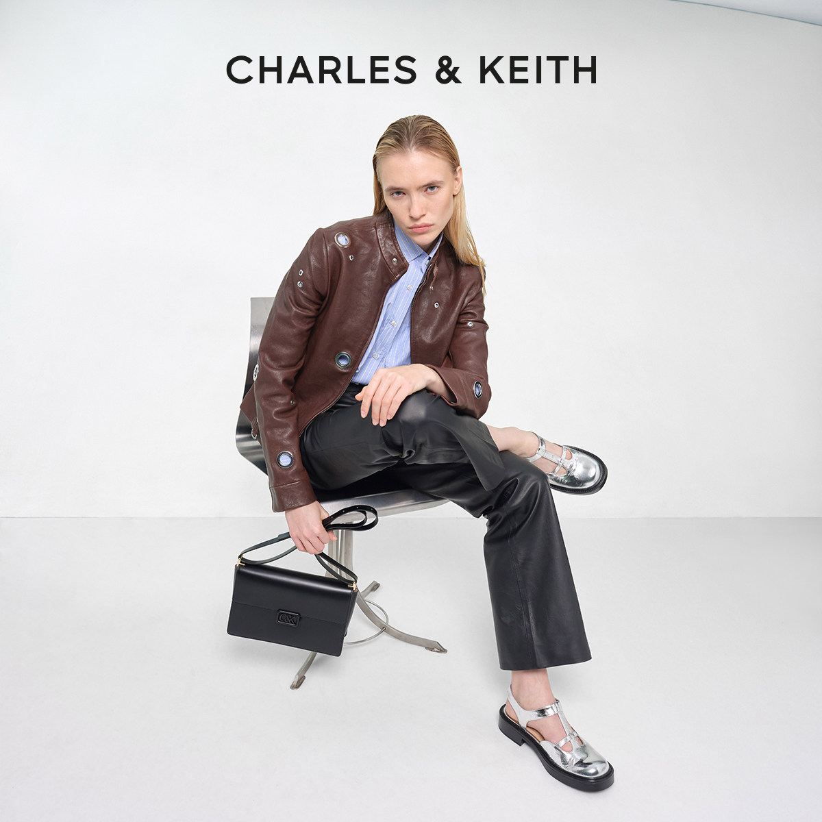 CHARLES&KEITH秋冬女包SL2 20271320通勤牛皮单肩信封包小方包女