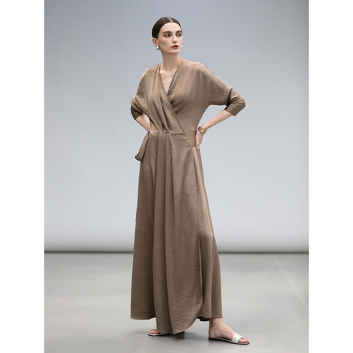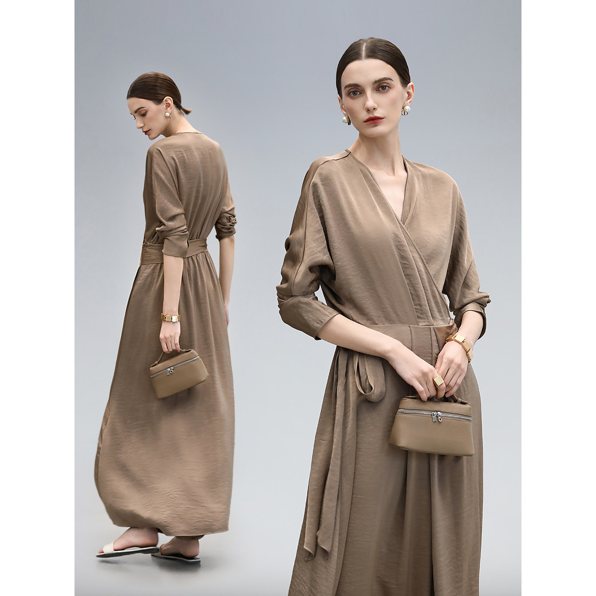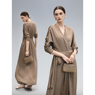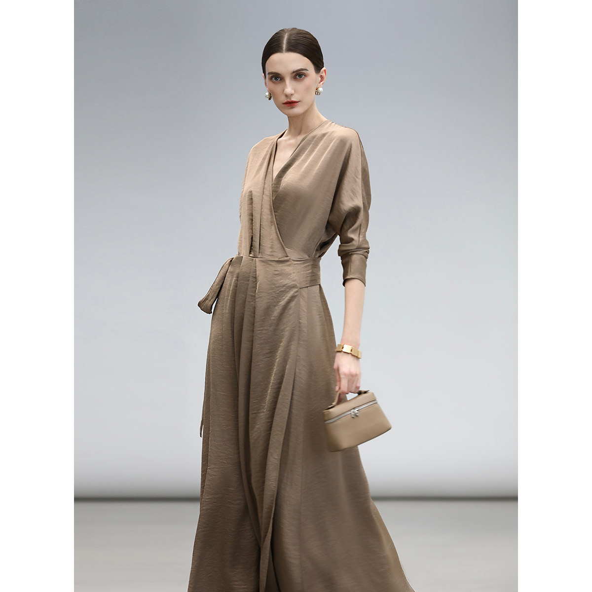 茶歇裙FR3010 连衣裙女秋轻奢风法式 COCOBELLA围裹式 丝光缎面长袖