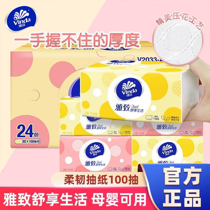 维达抽纸6包提装 3层细韧软抽面巾纸加厚餐巾纸卫生纸巾抽母婴可用