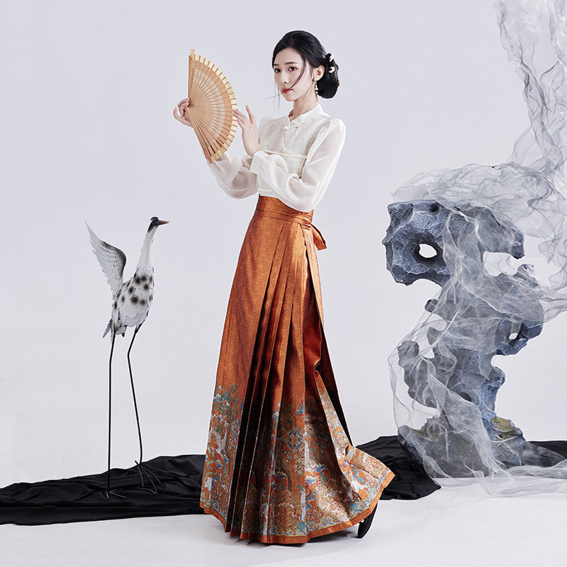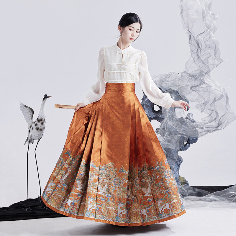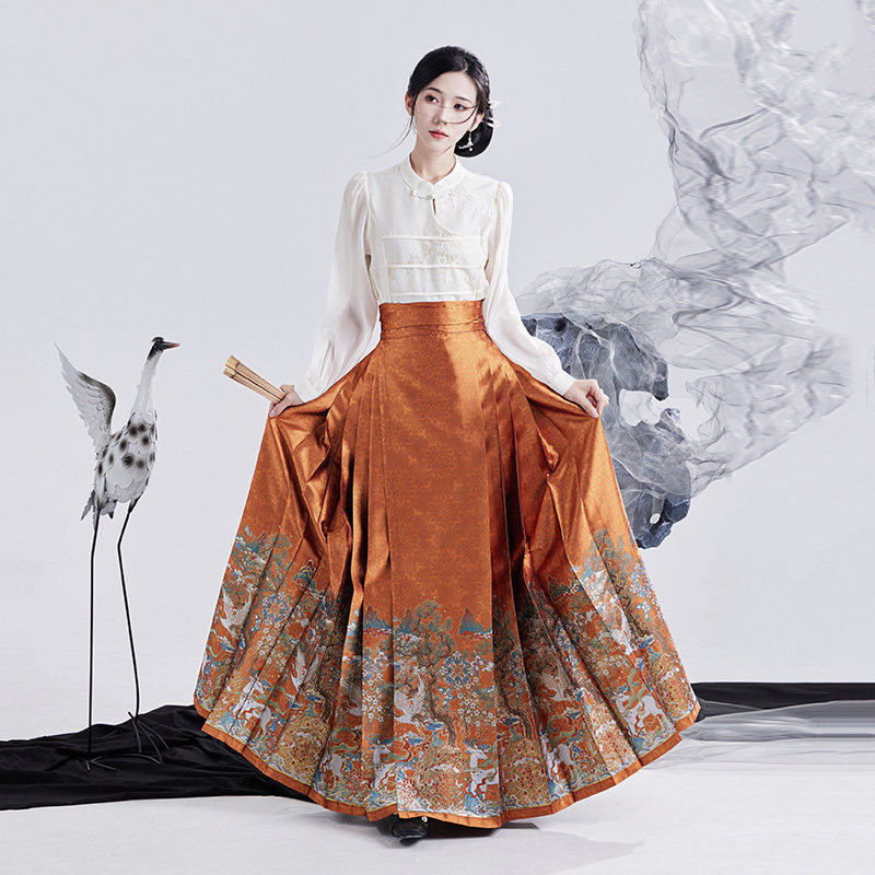 福鹿寿 水揽星河妆花马面裙套装 日常橙色 新中式 汉服女 2024新款
