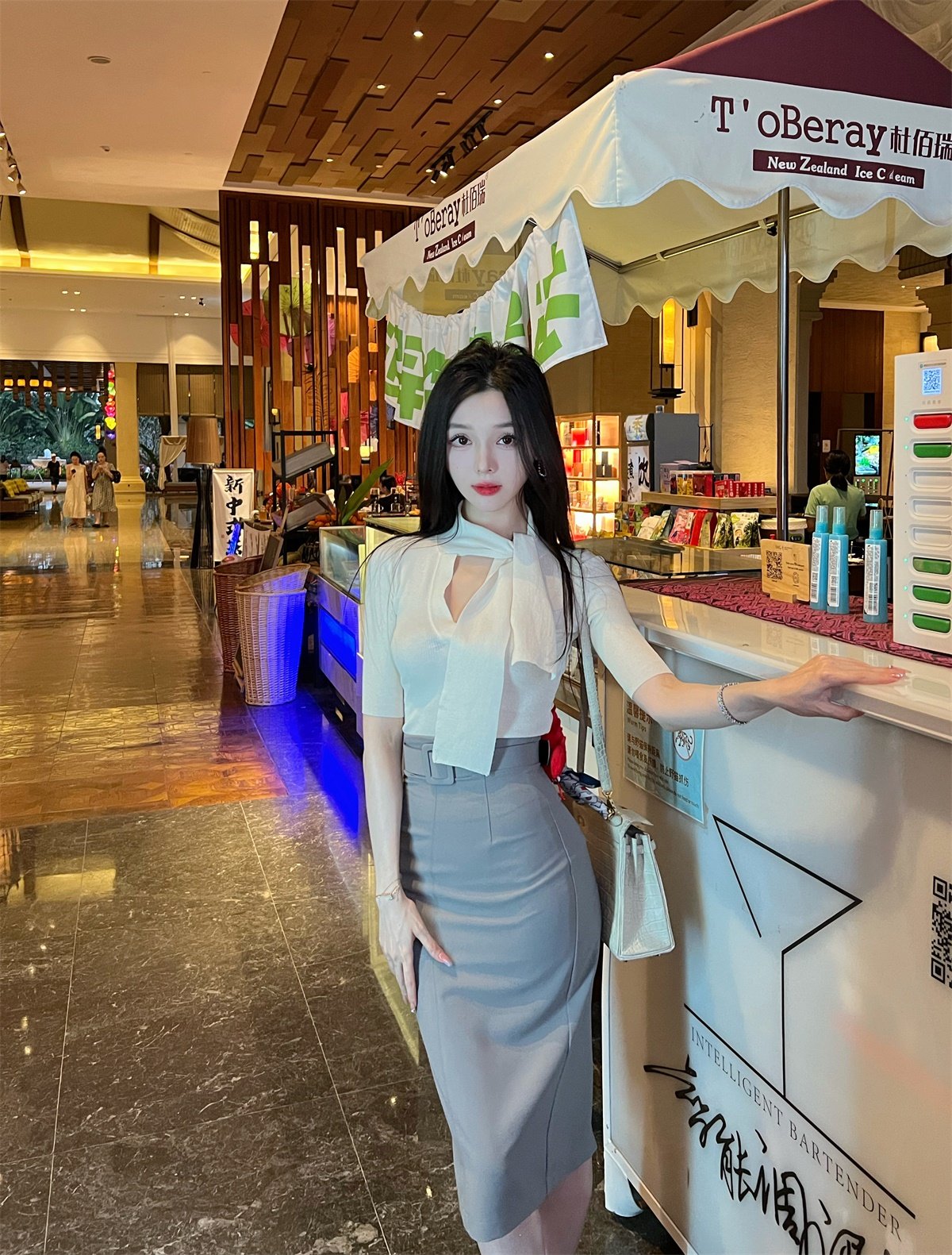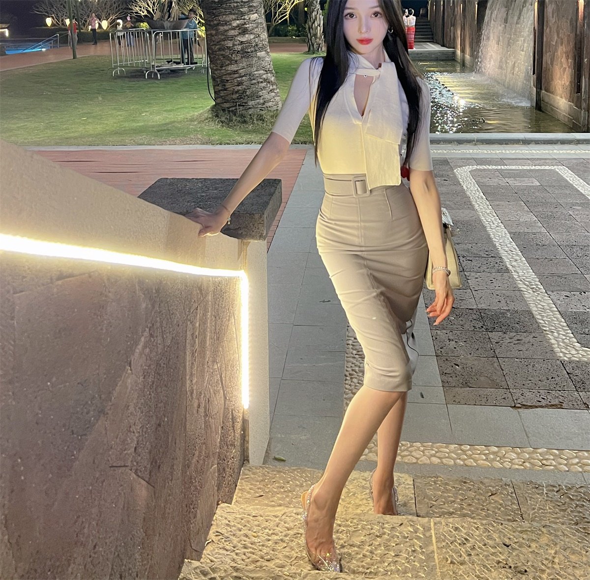显瘦百搭上衣 t恤女早秋韩系修身 大码 胖mm设计感格子绑带斜肩长袖