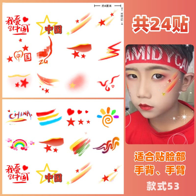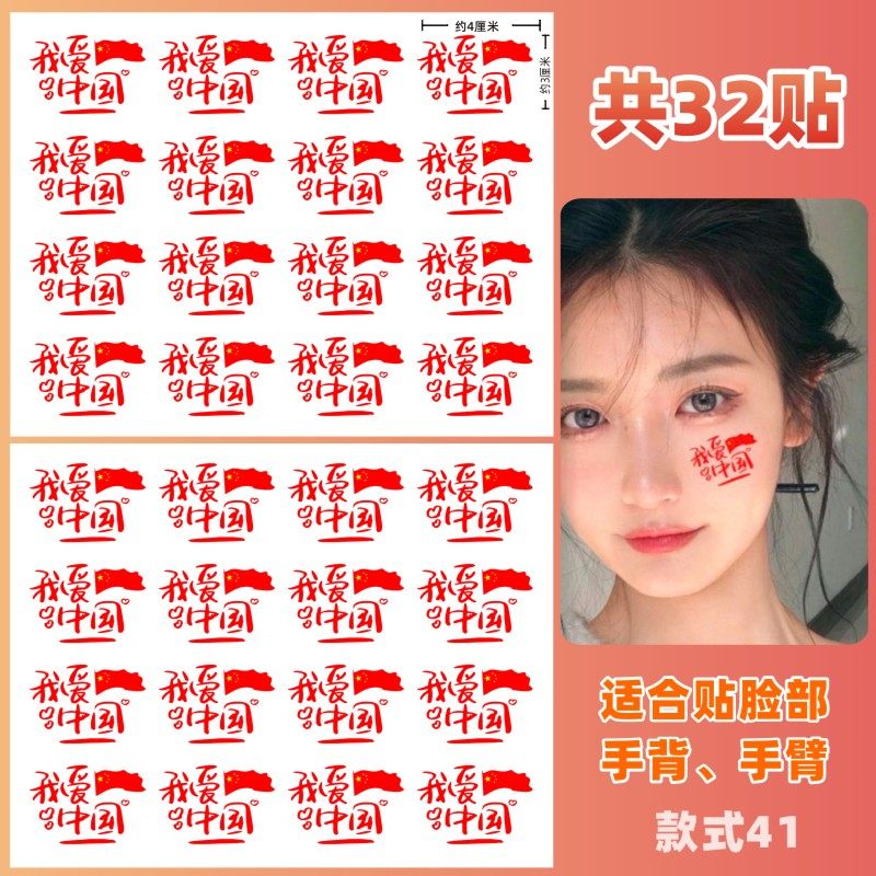 我爱中国贴纸脸爱国纹身贴纸国庆六一儿童节运动会脸贴活动脸手贴