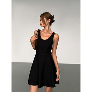 短款 ousph小个子黑色拼接收腰连衣裙女修身 气质性感高级设计法式