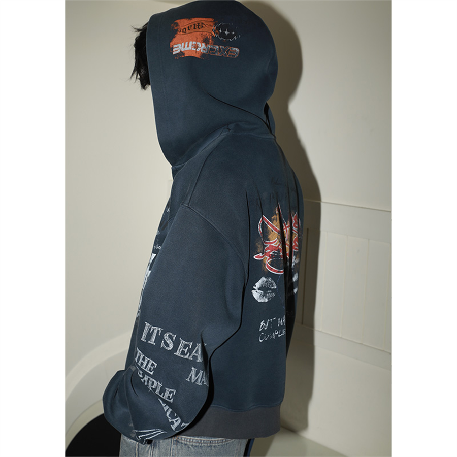 450G重磅美式 直喷团体印logo工作服 宽松落肩圆领连帽卫衣定制数码
