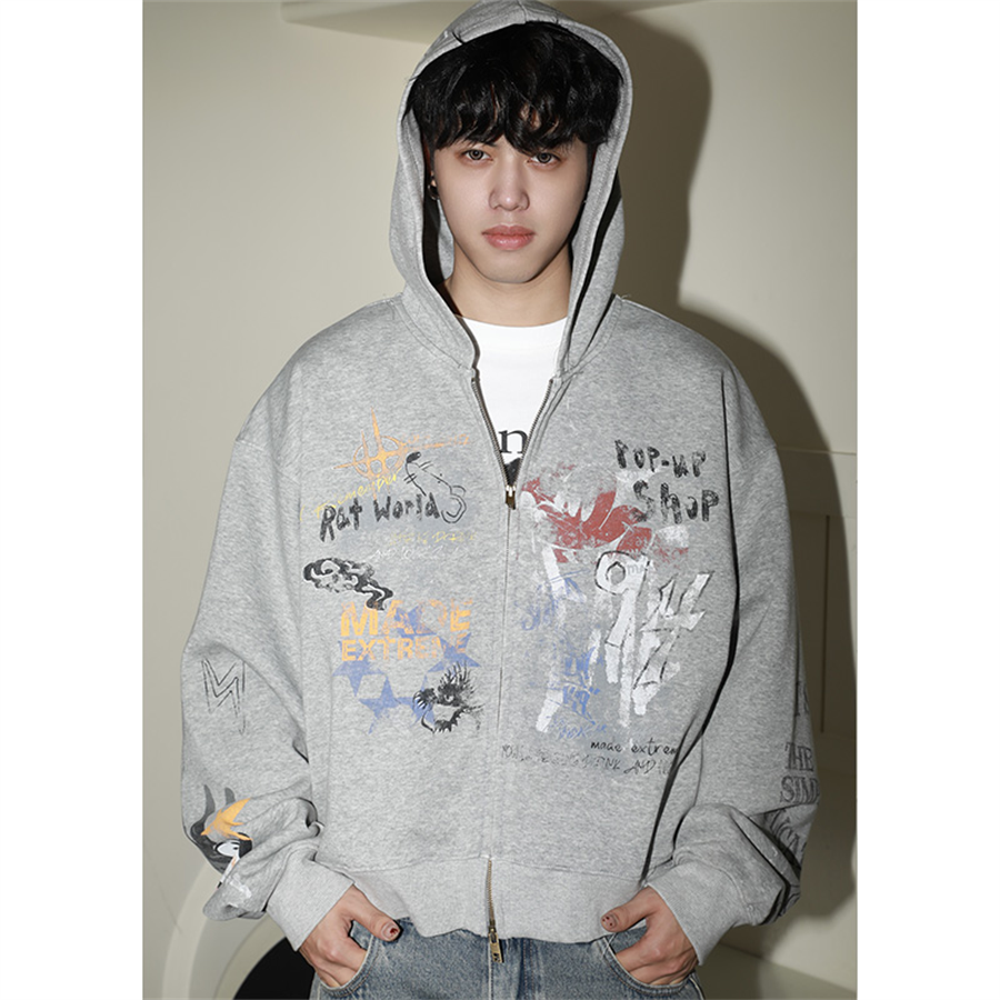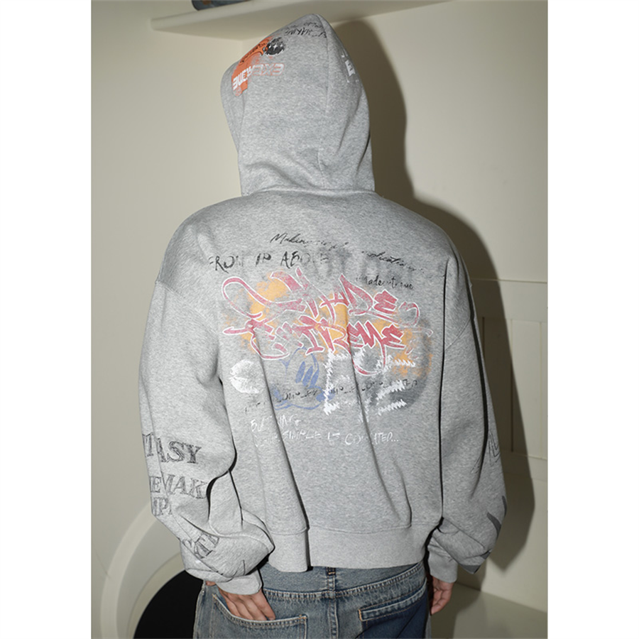 百搭重磅休闲上衣 秋冬季 FPASCA国潮美式 复古字母印花连帽卫衣男款