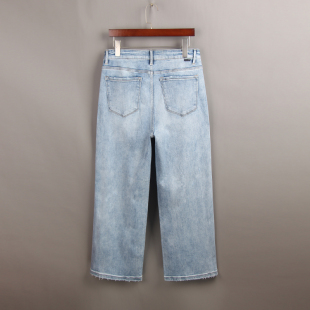 高腰弹力显瘦9分裤 女外单200斤大码 宽松阔腿直筒牛仔裤 2024春新款