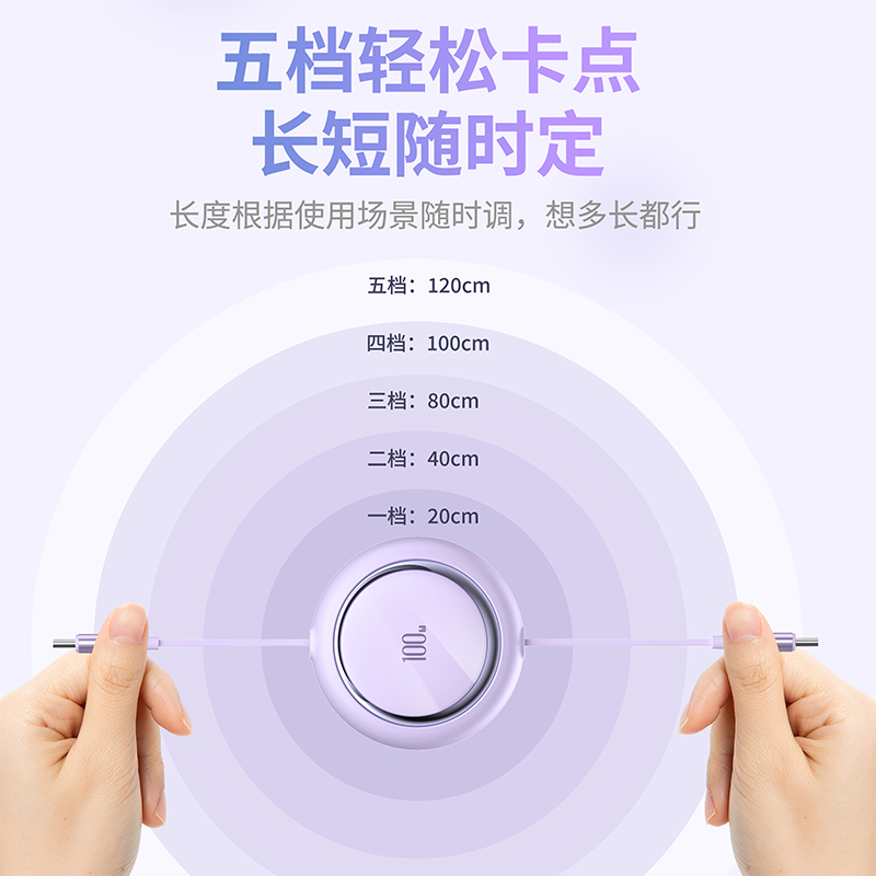 森达升100W伸缩充电器线6A超级快充适用iPhone15苹果小米华为ipad平板双头typec数据线PD27W一拖一车载收纳用