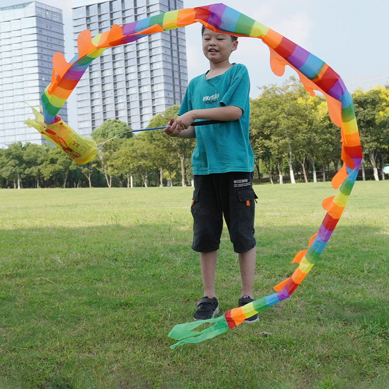 甩龙舞龙彩带手舞龙甩甩龙广场舞空竹龙道具儿童耍龙彩条健身龙