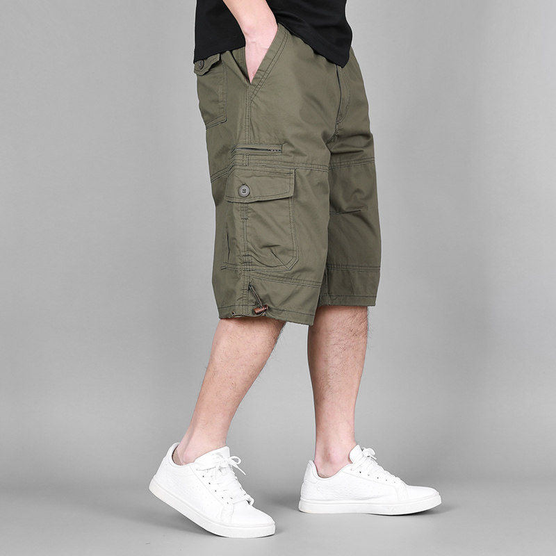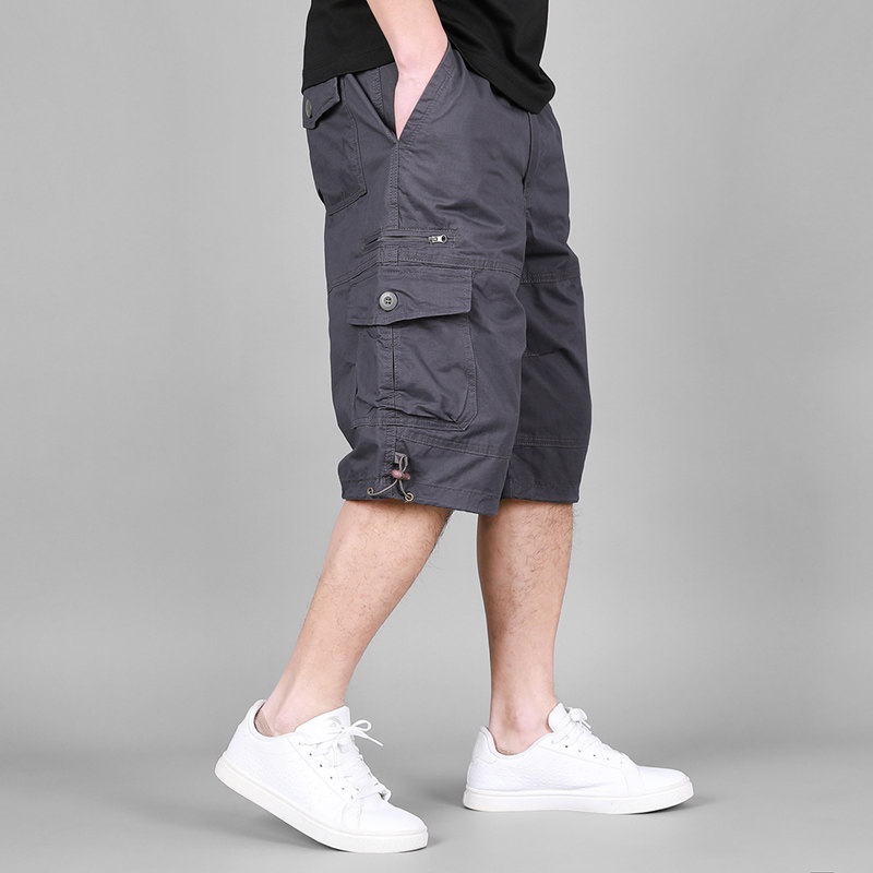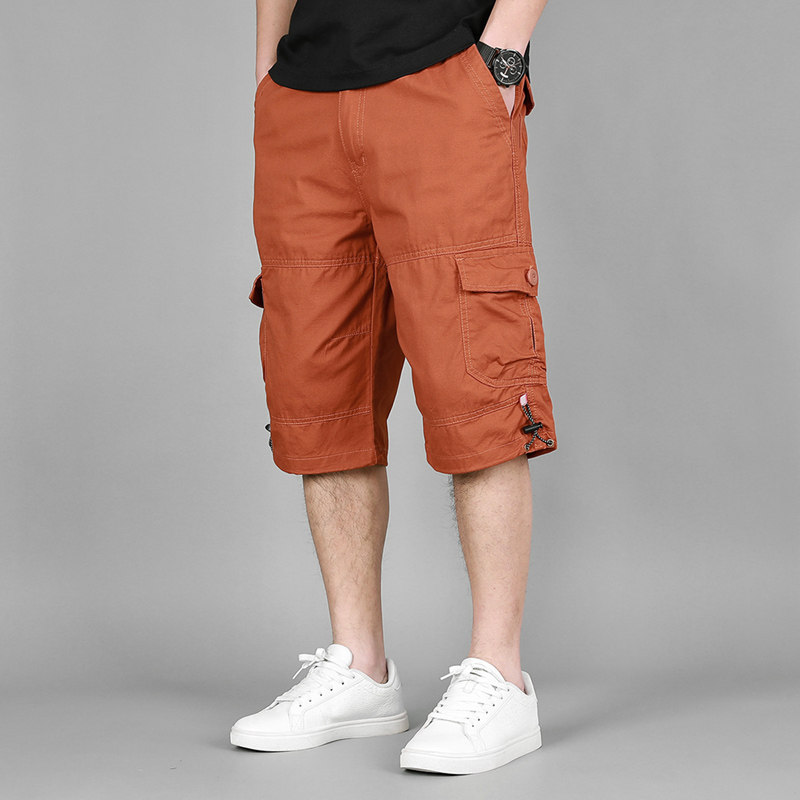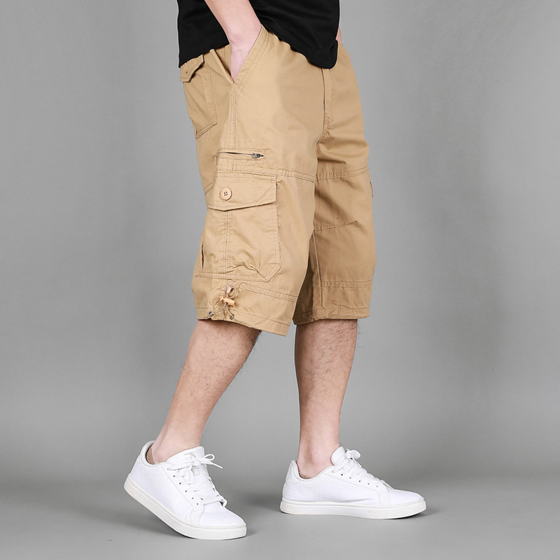 薄款 耐磨纯棉五分裤 加肥加大码 工装 直筒中裤 男夏季 多袋沙滩裤 短裤