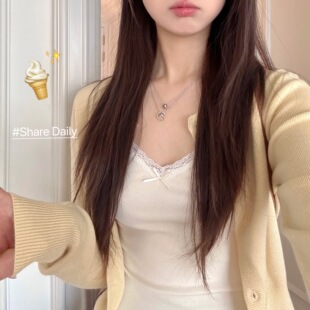 甜美上衣 粉色蕾丝蝴蝶结吊带女背心2025新款 清仓特价 内搭天才