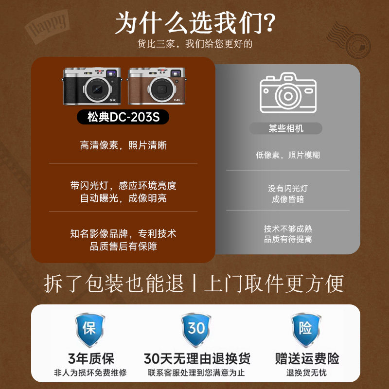 松典 照相机自拍微单旅游单反入门级学生vlog 5K前后双摄高清数码