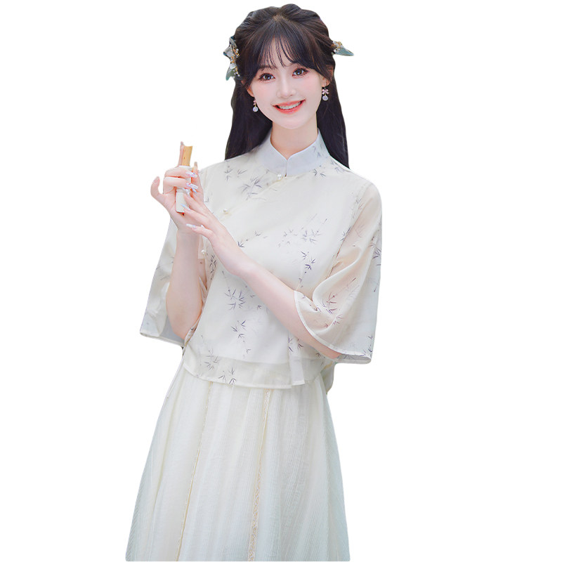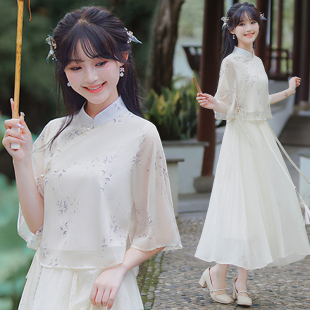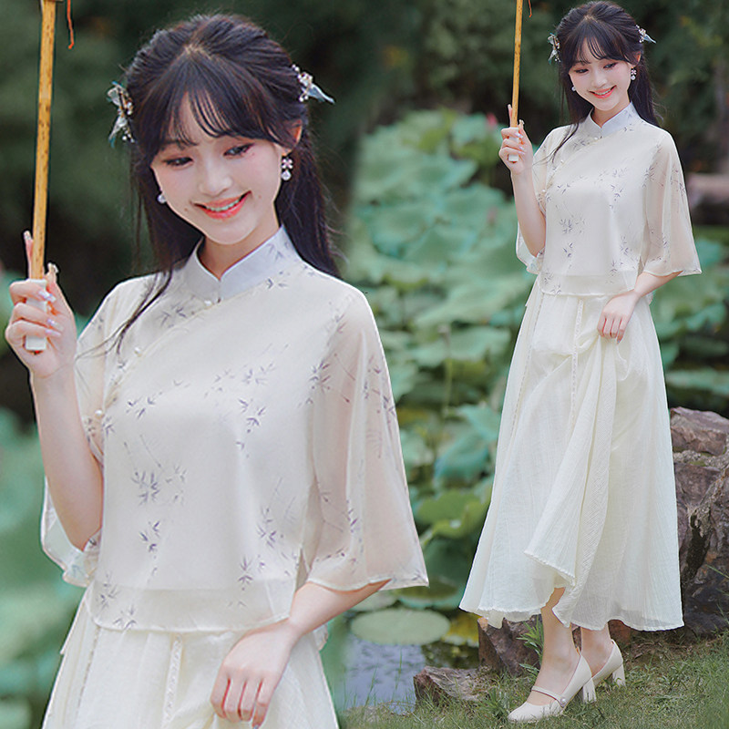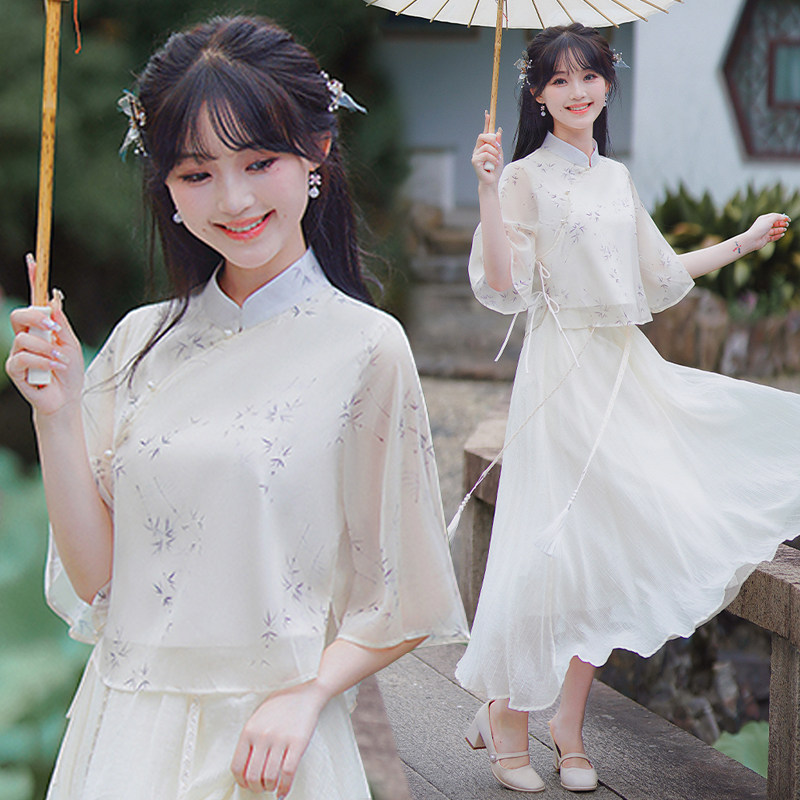 复古装 年轻新款 国风套装 旗袍两件套新中式 印花改良旗袍 少女唐装