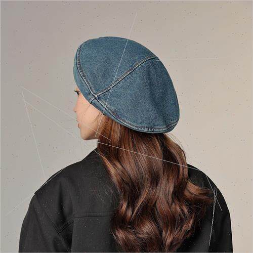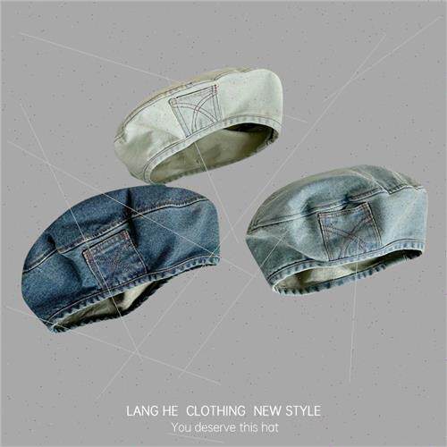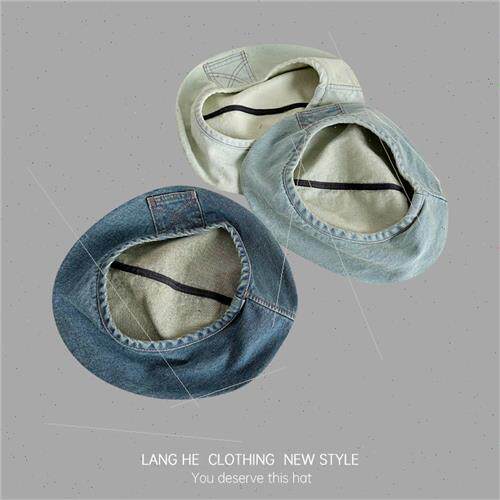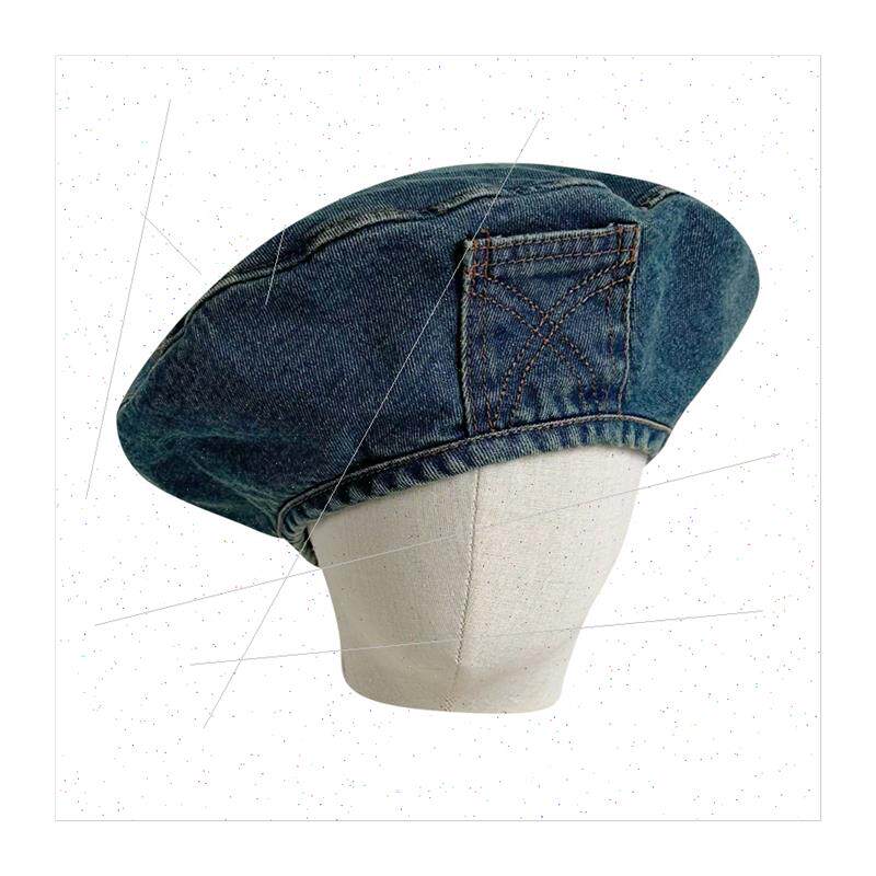 old female small face show washed fashion beret Cowboy
