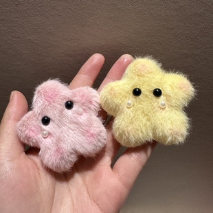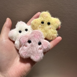 秋冬新款 毛绒星星纽扣发夹刘海夹碎发边夹设计感毛绒绒发饰发卡子