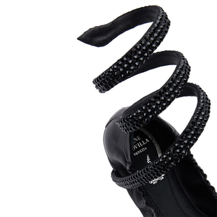 CAOVILLA RENE CLEO系列黑色水钻平底女士芭蕾鞋 年终折扣