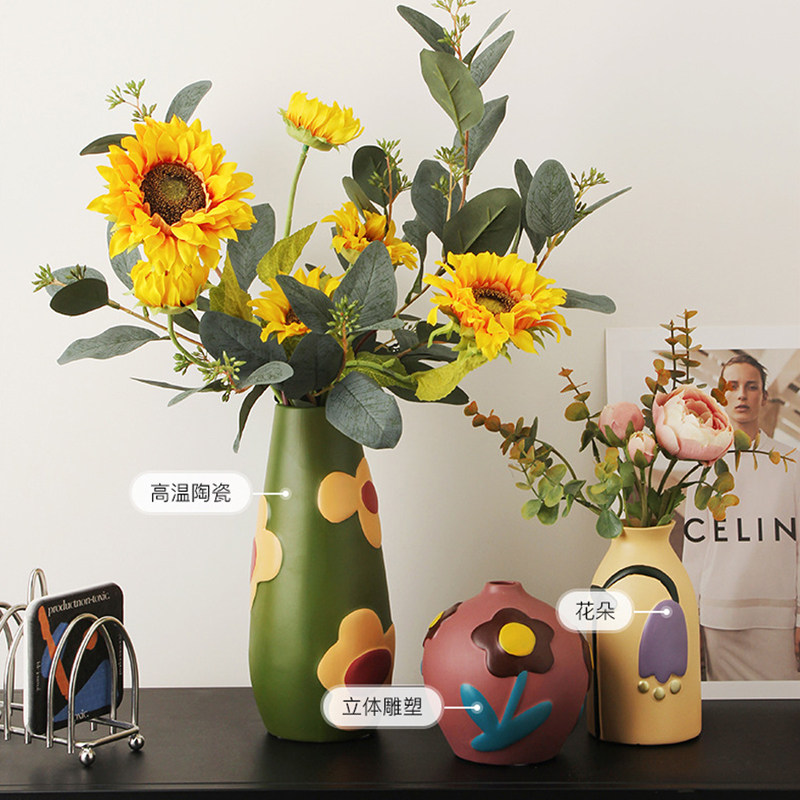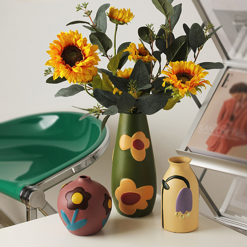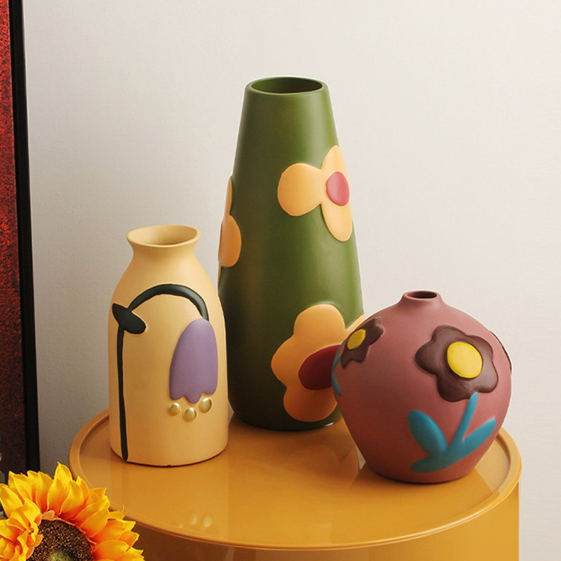 创意民族风莫兰迪色系手绘陶瓷花瓶复古彩绘摆件异域风情软装 饰品