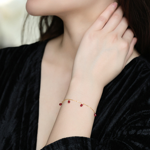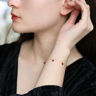 若华珠宝婉尔 鸽血红宝石手链女18K金彩宝手串红绳手饰手绳礼物