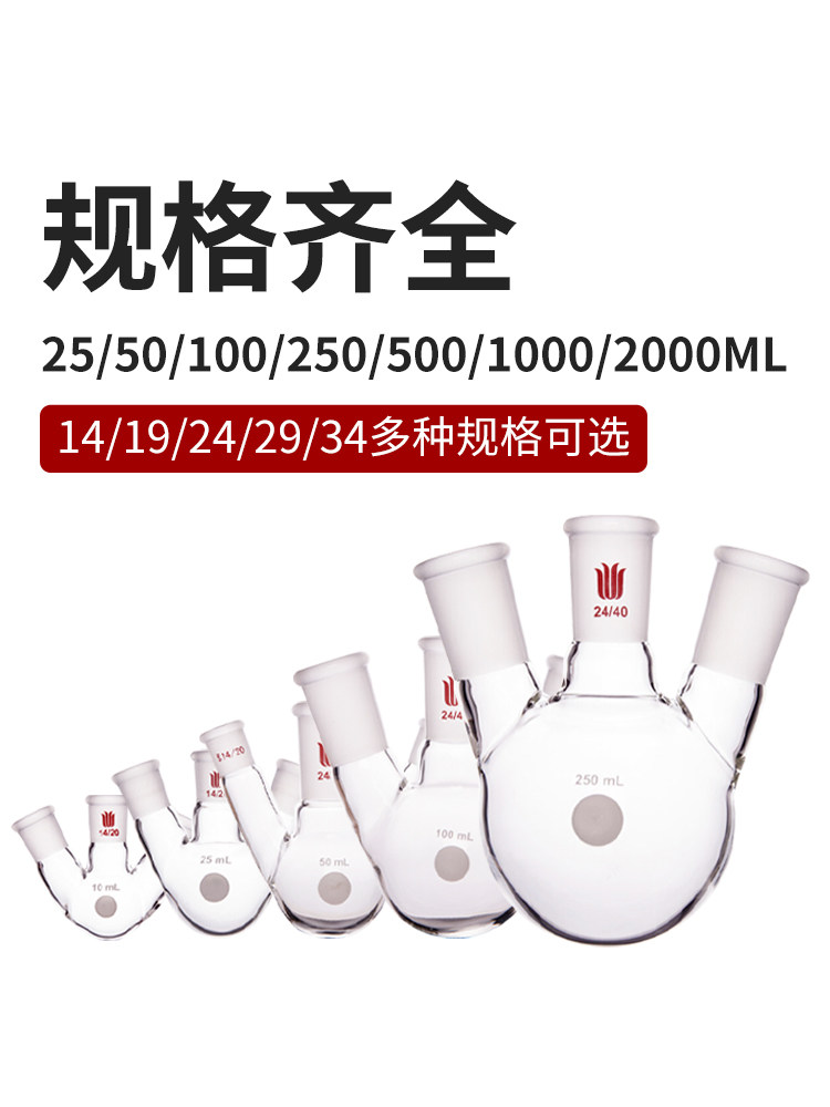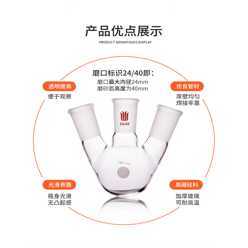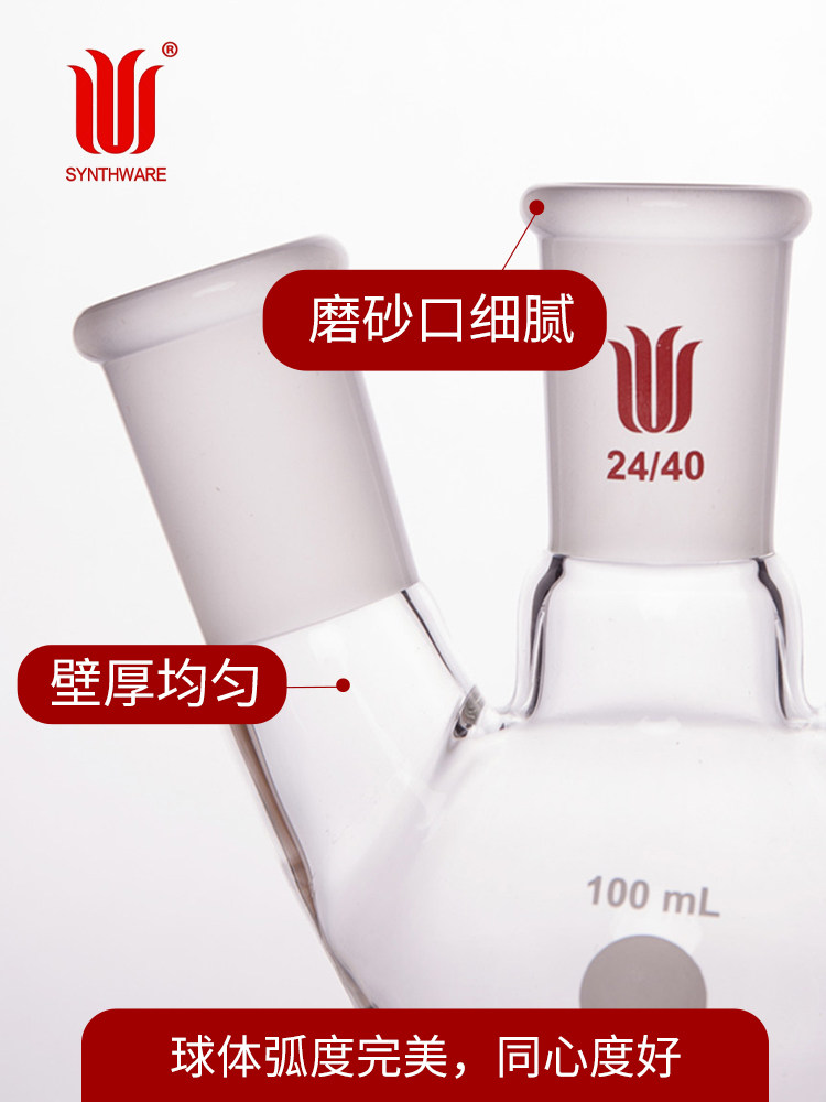 F439250 F43 欣维尔Synthware斜三口圆底烧瓶球瓶3口实验室24口标准磨口学生学校100ml正品 加厚高硼硅玻璃