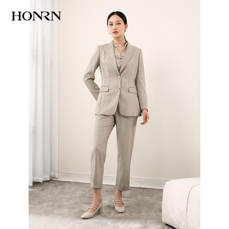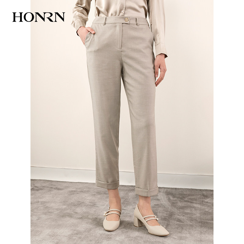 束脚休闲裤 HONRN 子九分直筒西装 杏色裤 女春秋HH11OK524 红人修身