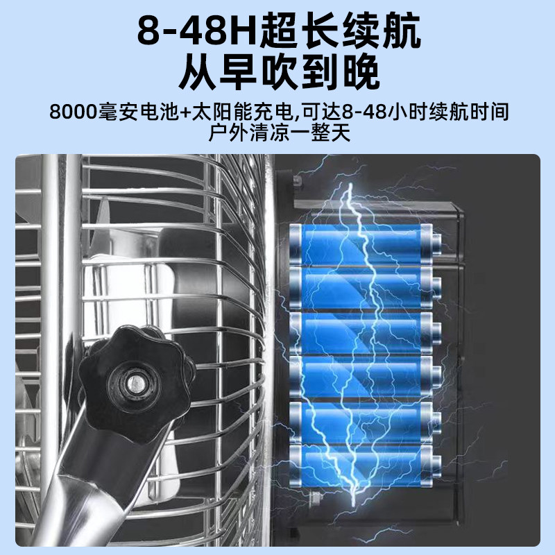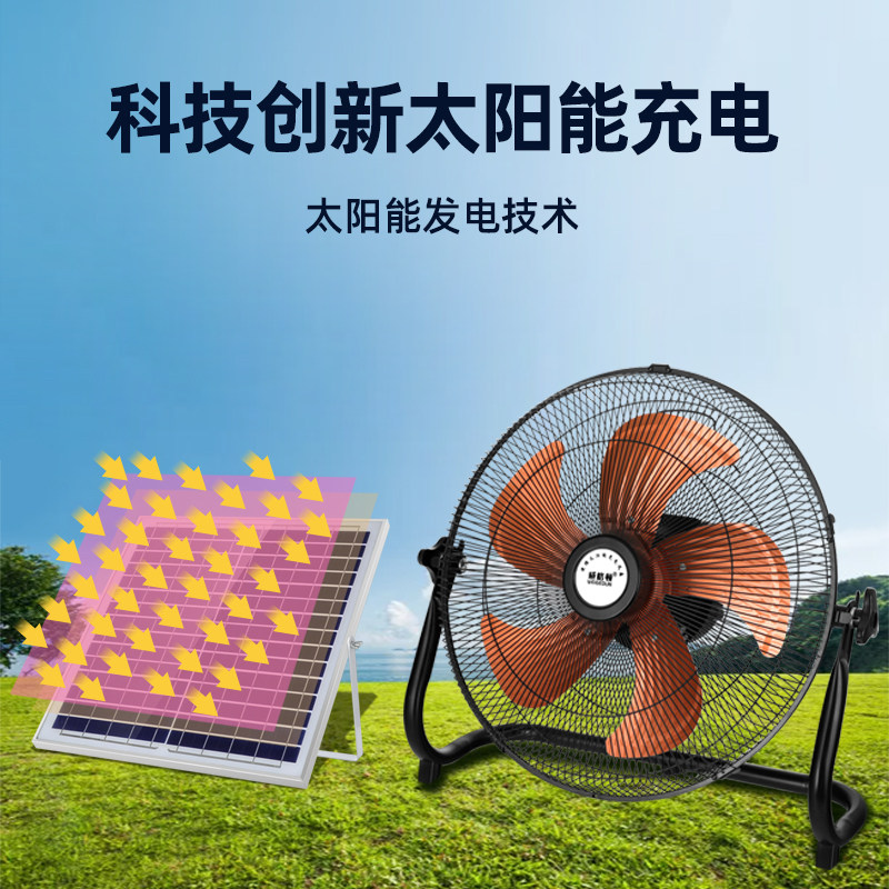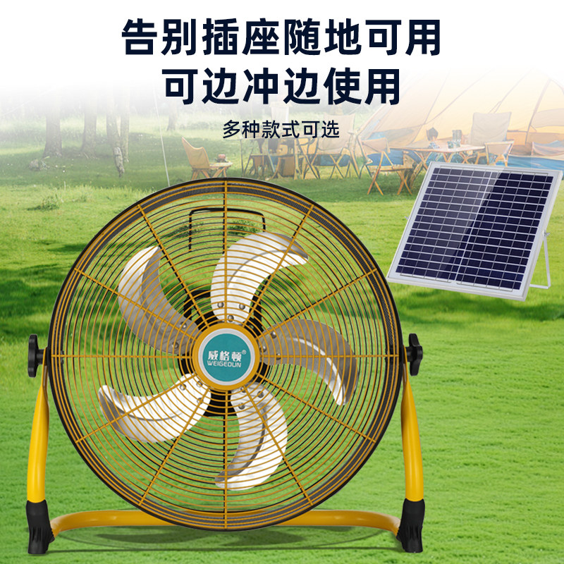 可充电太阳能16寸趴地扇大风力便携式 户外家用蓄电池充电趴地风扇