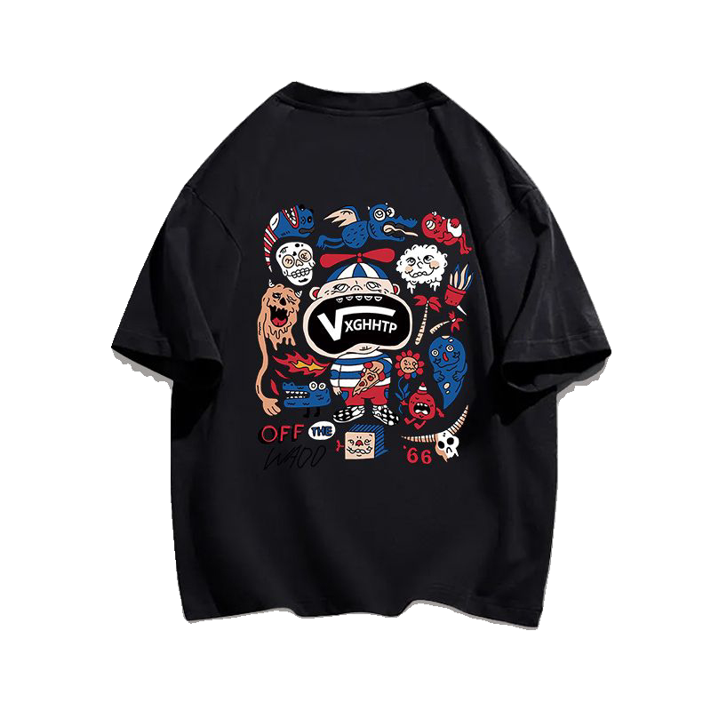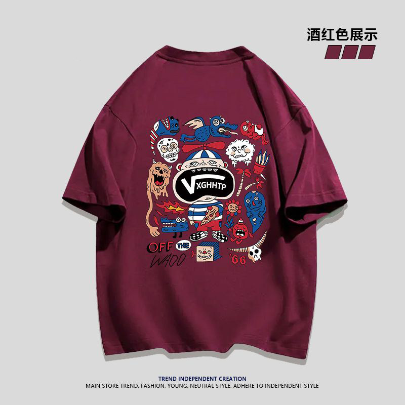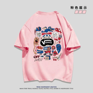 宽松休闲上衣男女 ins夏季 重磅纯棉日系复古搞怪印花短袖 t恤情侣装