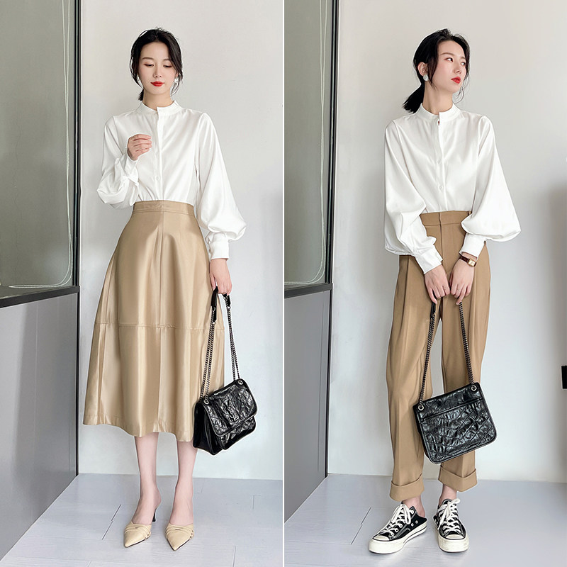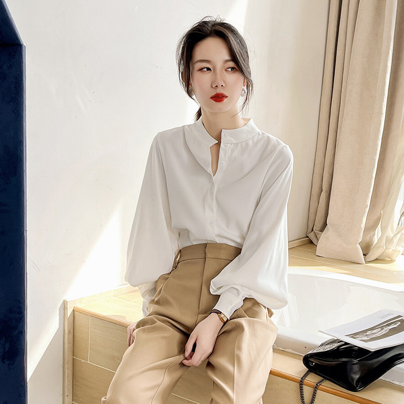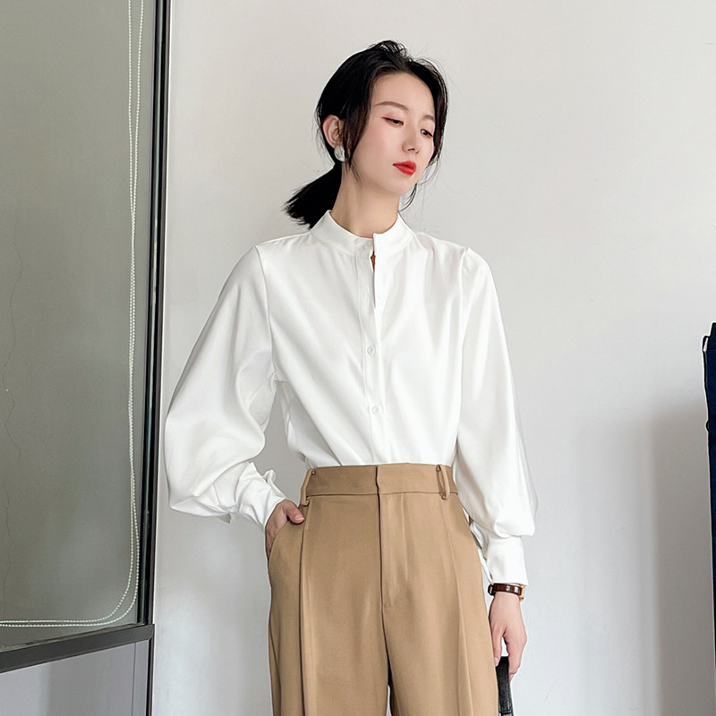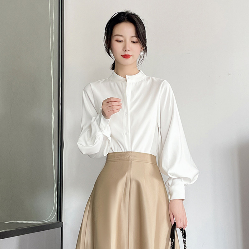 轻奢高级感圆领衬衣长袖 立领法式 女设计感复古新中式 衬衫 春 灯笼袖