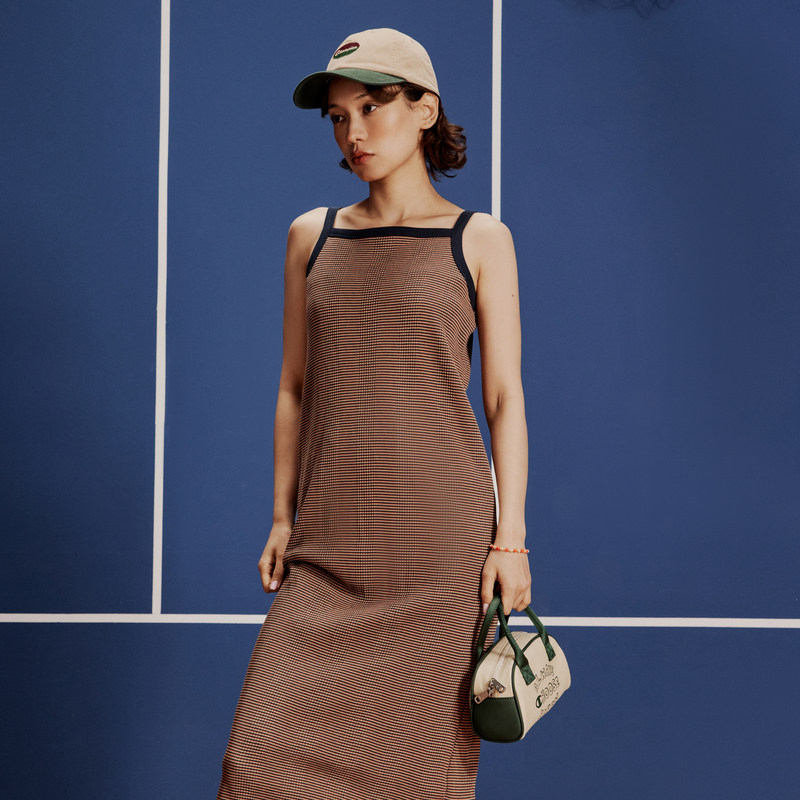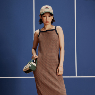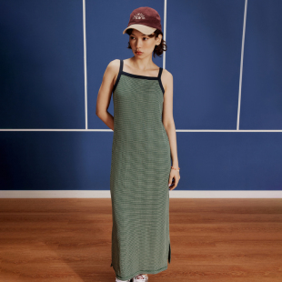 Champion冠军连衣裙女春季 拼色长裙针织吊带裙直筒休闲运动裙子潮