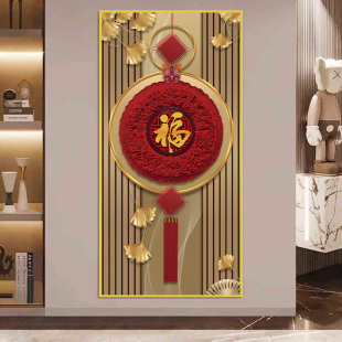 自粘装 入户正对门墙贴客厅防水墙纸壁画 饰画3D立体玄关贴画新中式