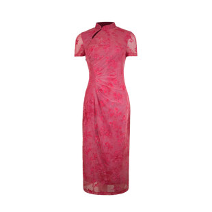 网纱改良旗袍碎花修身 酒午自制 短袖 新中式 连衣裙女春夏 半盏青