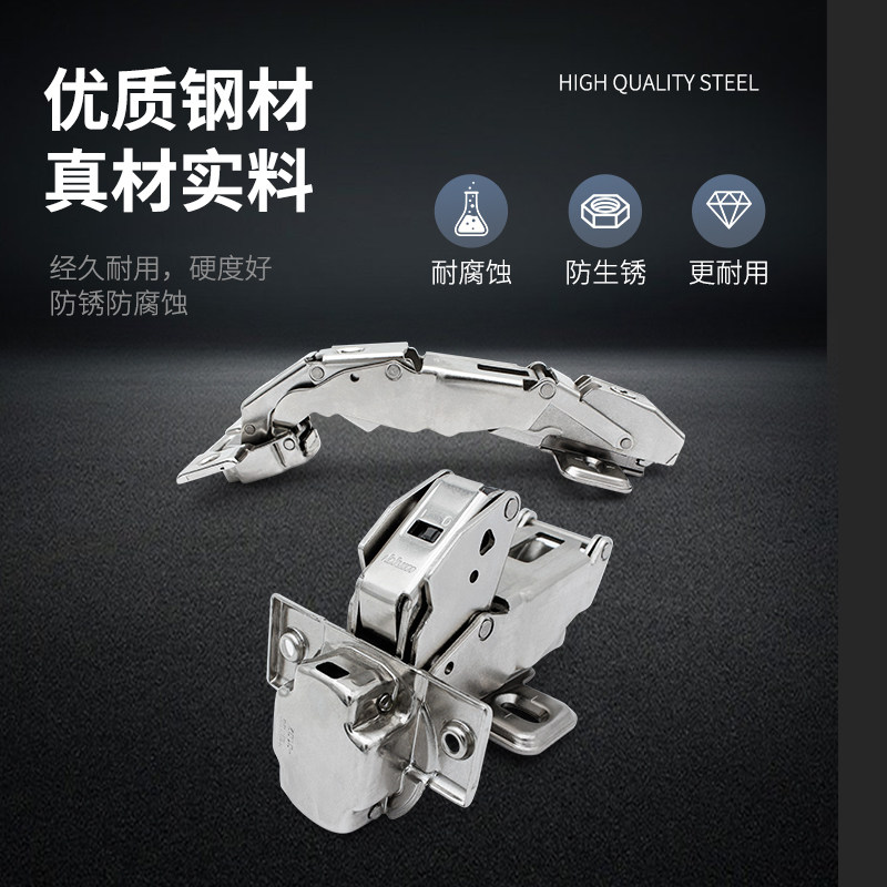 免开孔不锈钢橱柜门铰链铰弹簧合页衣柜五金阻尼液压缓冲折叠神器