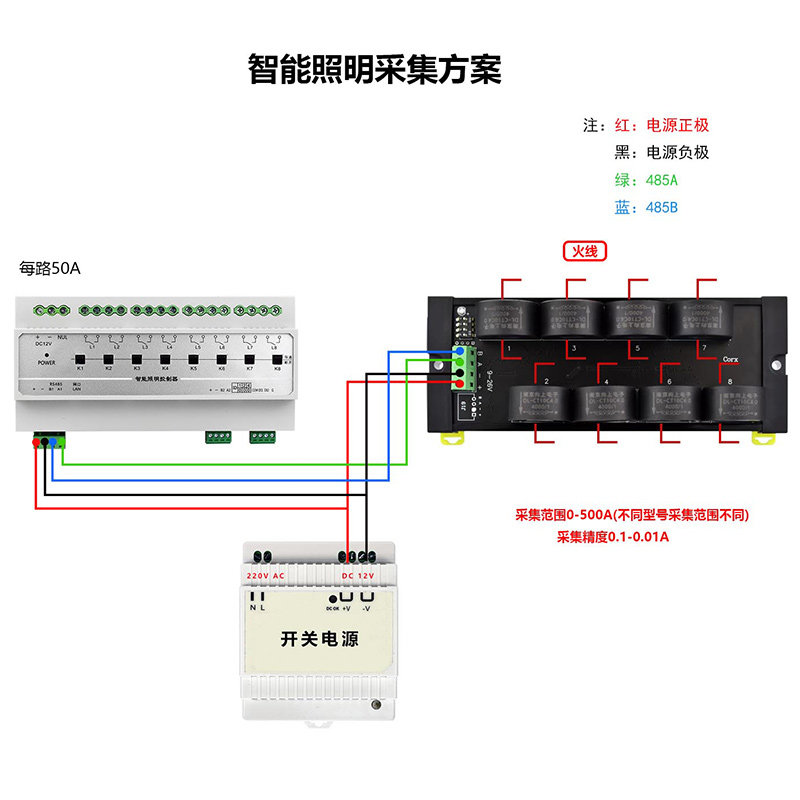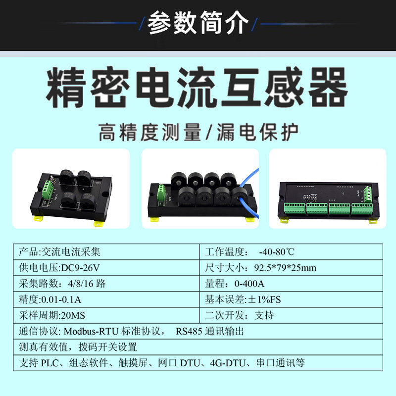 600A变送互感采集传感器 16路rs485交直流霍尔电流检测模块0