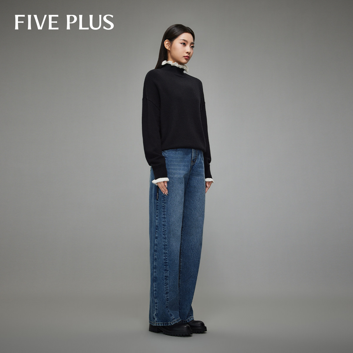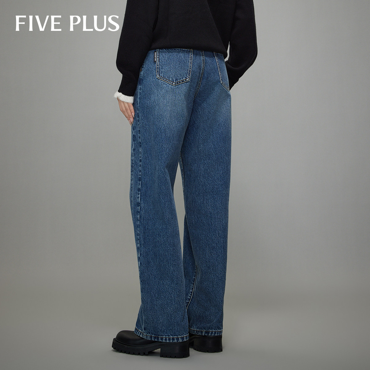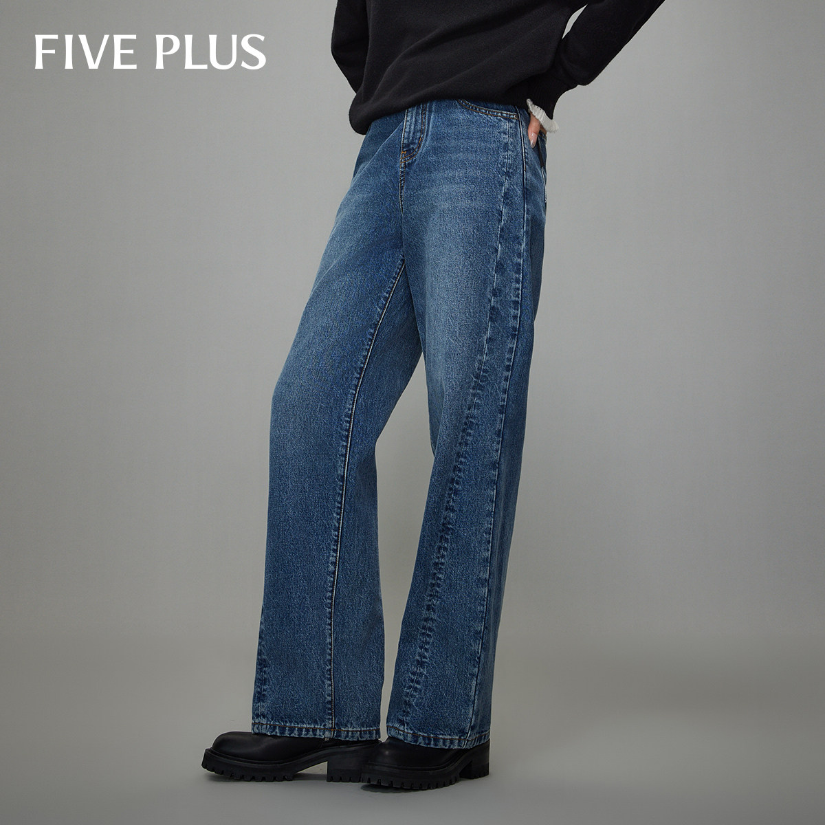 FIVE 女老爹风阔腿裤 PLUS 牛仔长裤 子宽松显瘦复古女冬装 奥莱