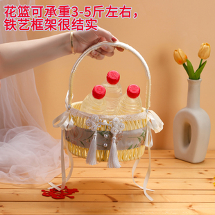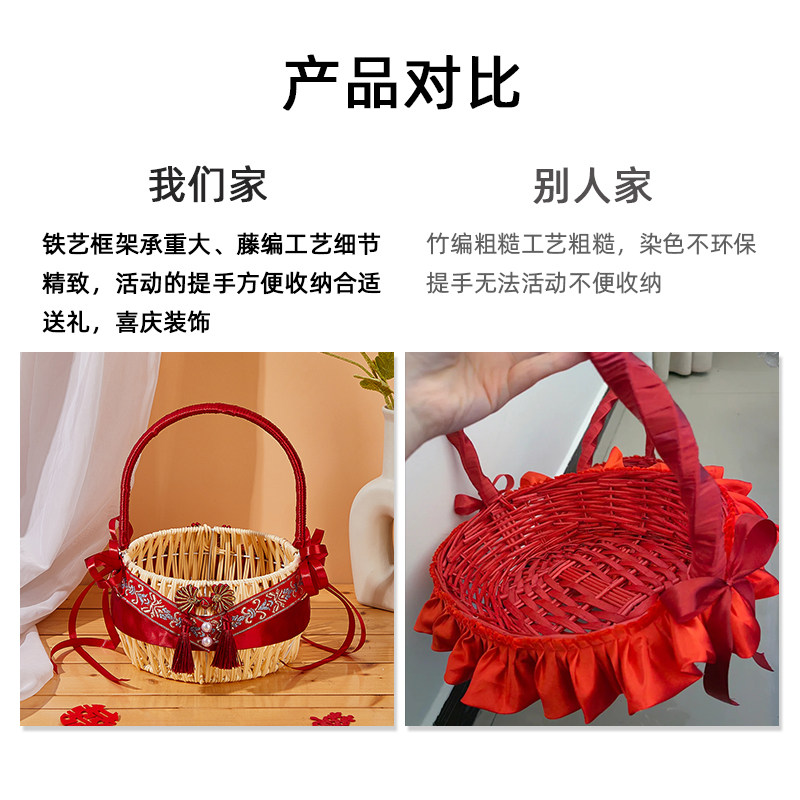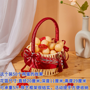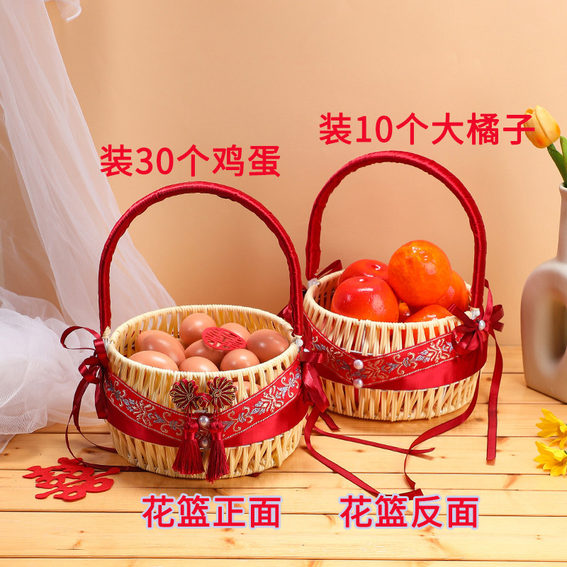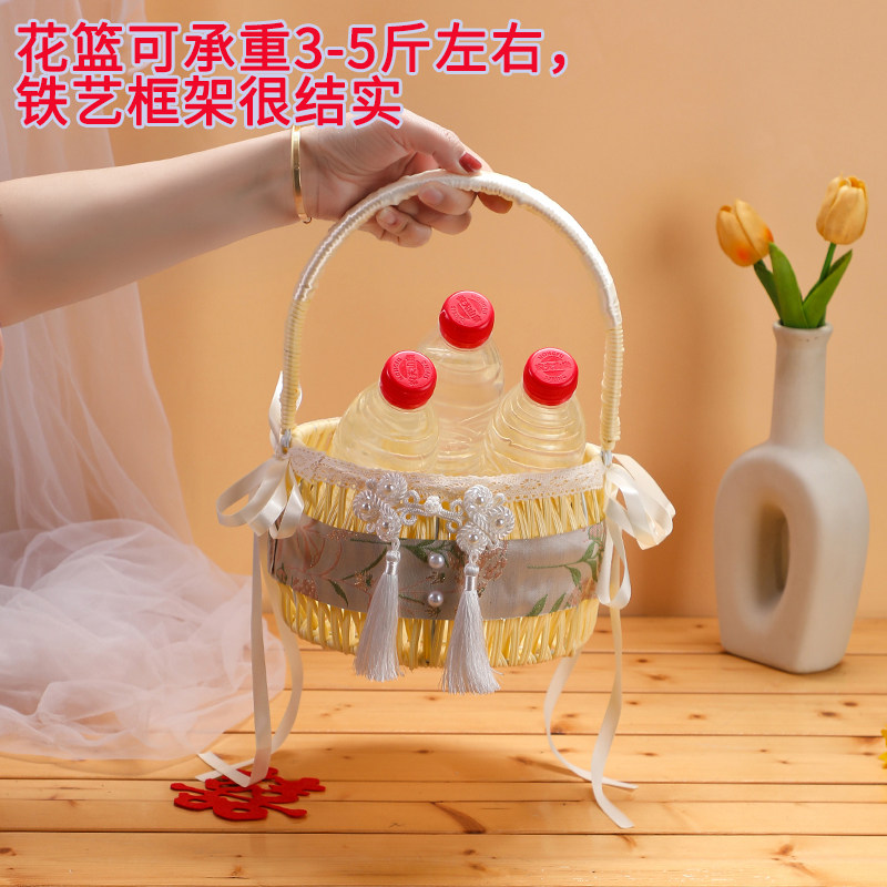 新中式 水果月子礼篮子 手提花篮结婚仿藤编花童撒花居家收纳野餐装