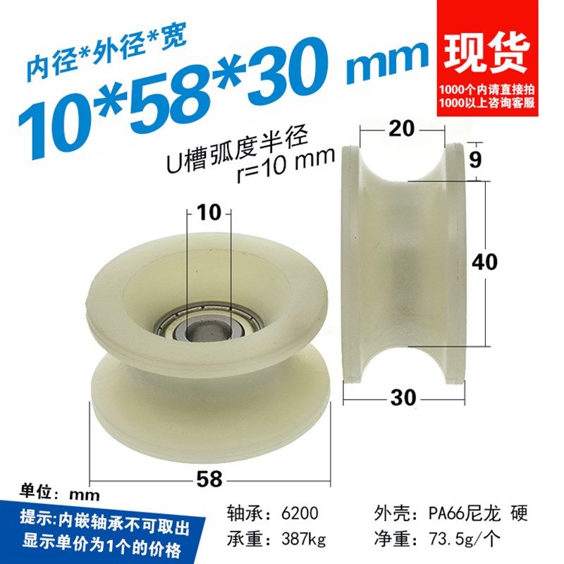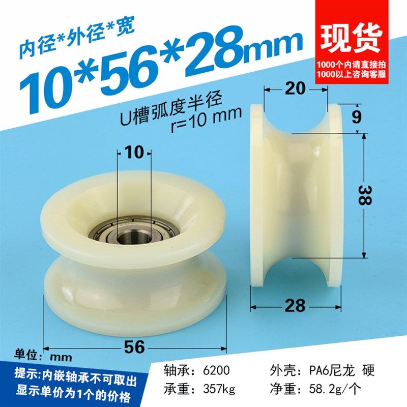 6200轴承包塑尼龙U槽轮四分管轨道轮r10注塑机安全门滚轮10