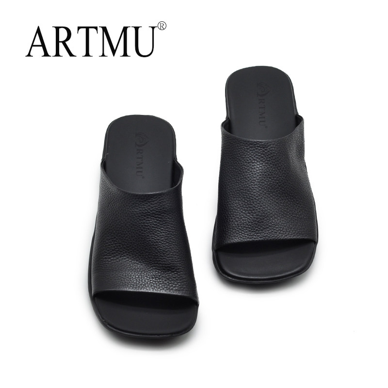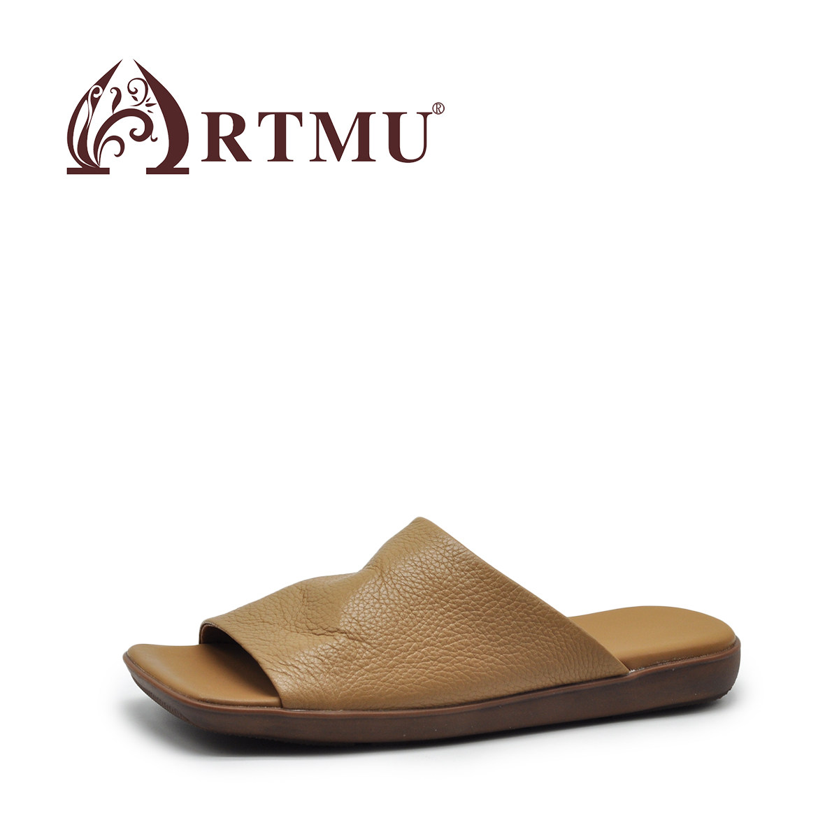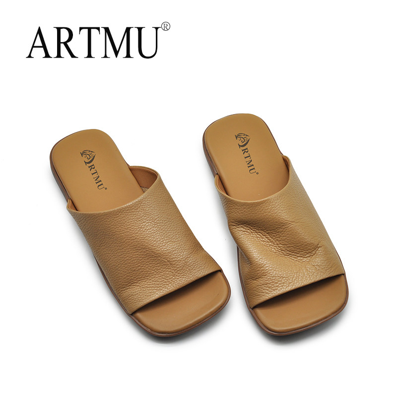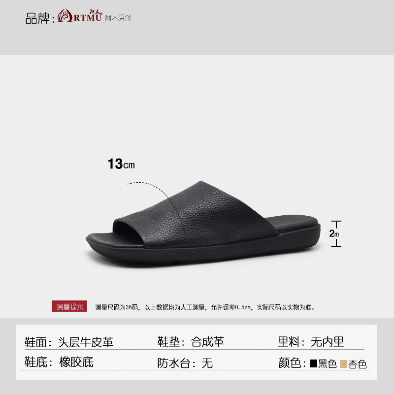 舒适百搭真皮凉拖软底 露趾拖鞋 阿木原创平底拖鞋 女夏外穿2025新款
