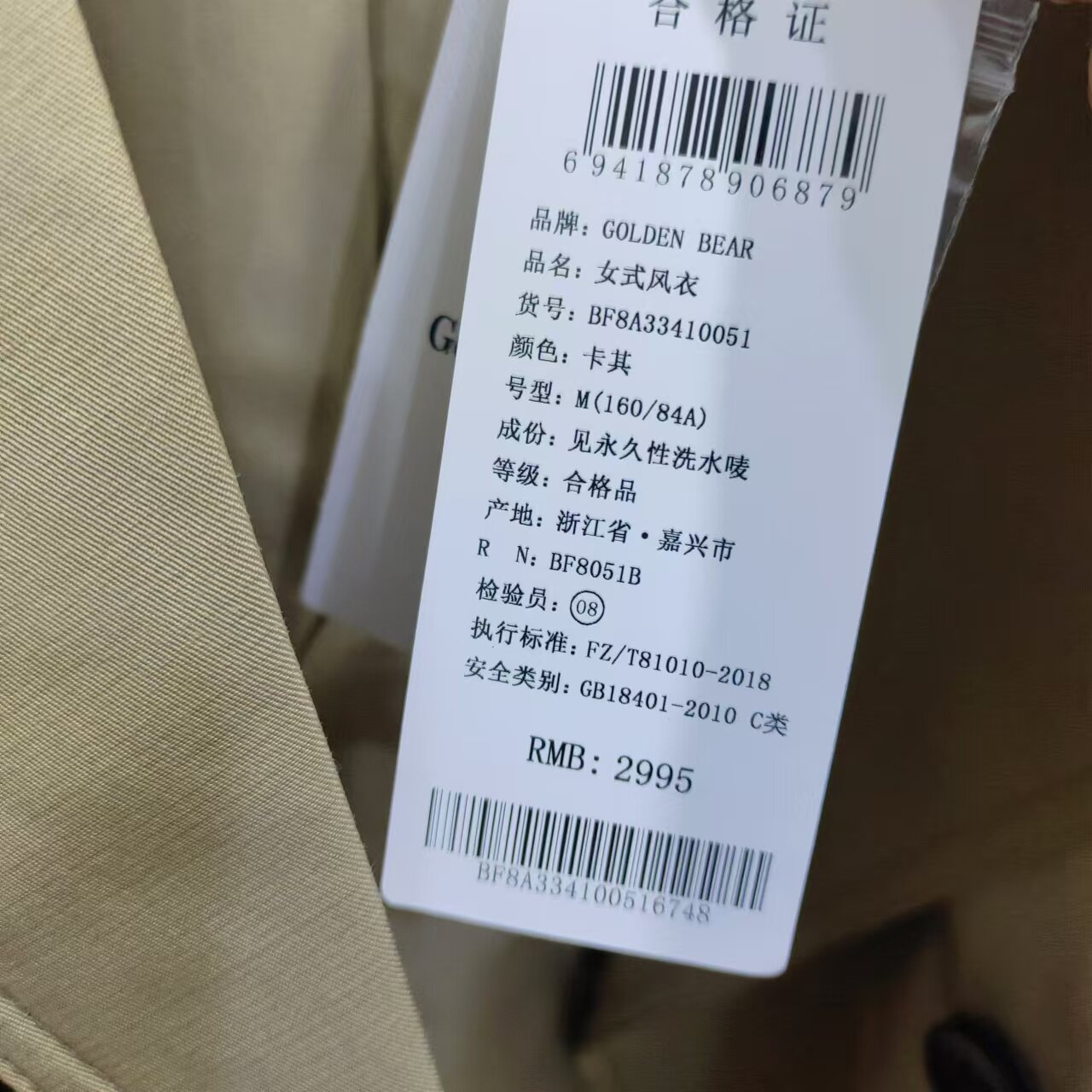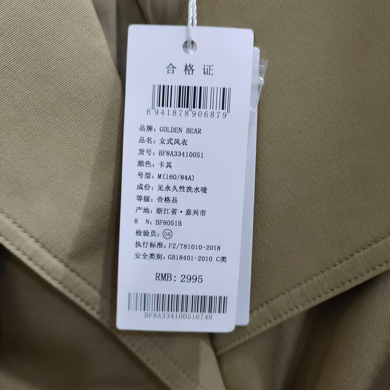 2995 高端大气女士风衣BF8A33410051 GOLDEN BEAR黄金熊春秋款