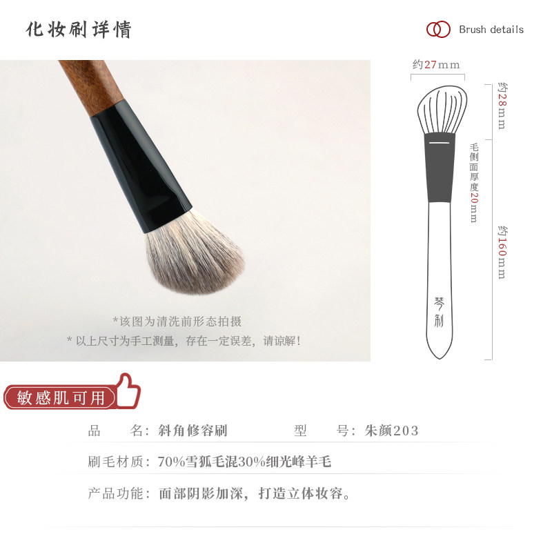 魅仔Y34斜坡腮红膏刷粉底刷膏状液体修容刷一支装 面部定妆化妆刷