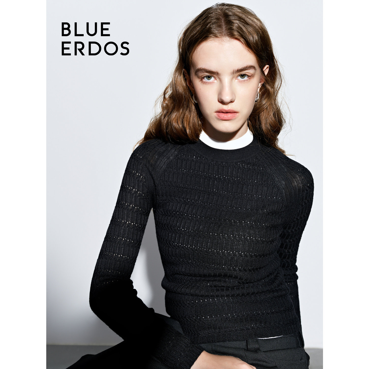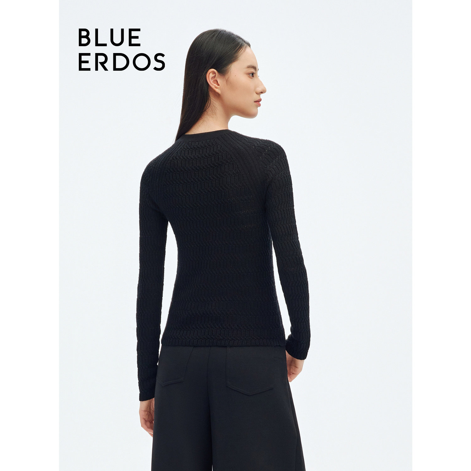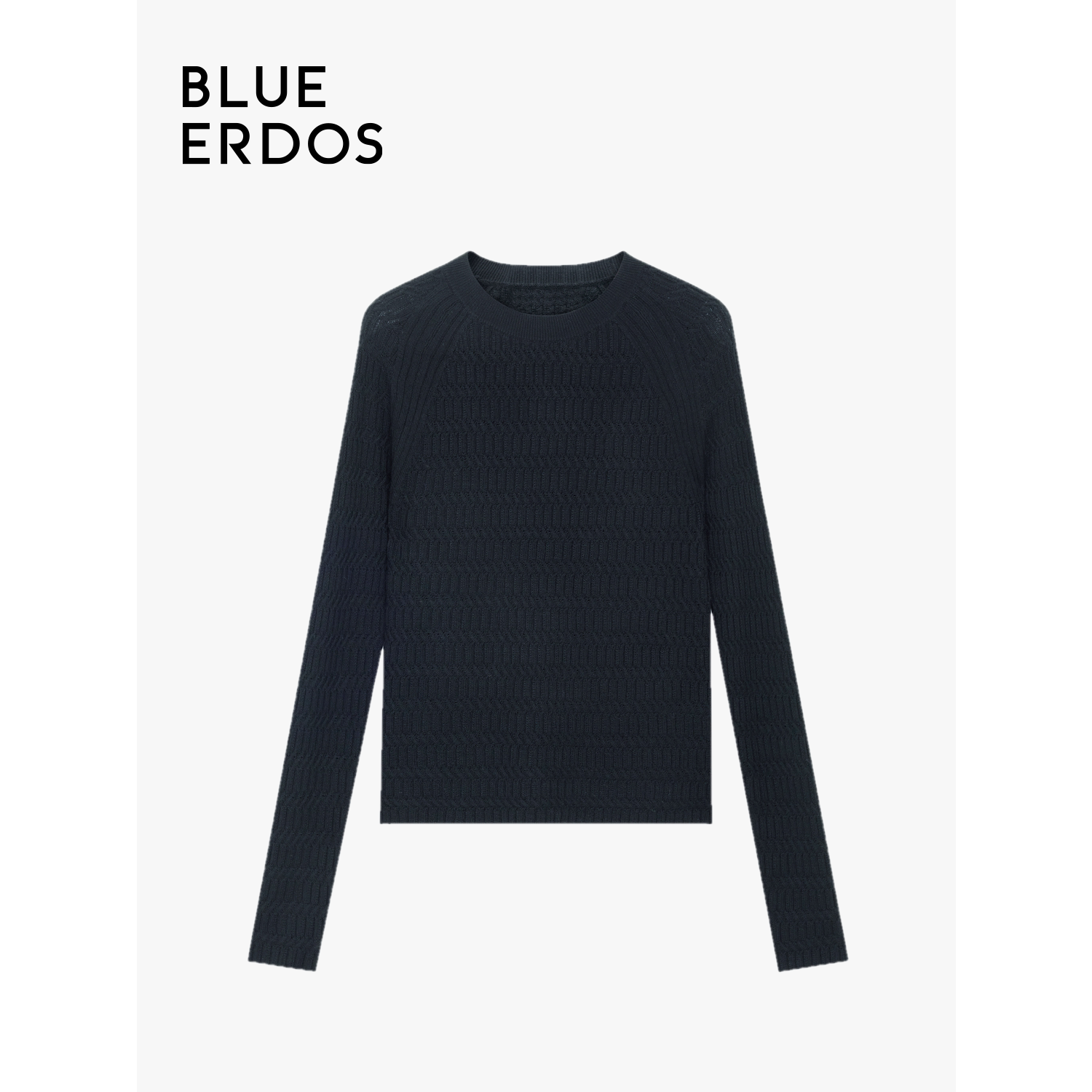 miu系肌理感打底针织衫 ERDOS春季 BLUE 上衣女 100%绵羊毛