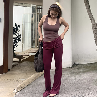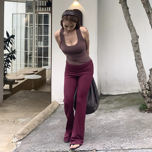 DINDI 梅子果酱大翻边微喇叭松弛感低腰螺纹质感显瘦氛围感长裤