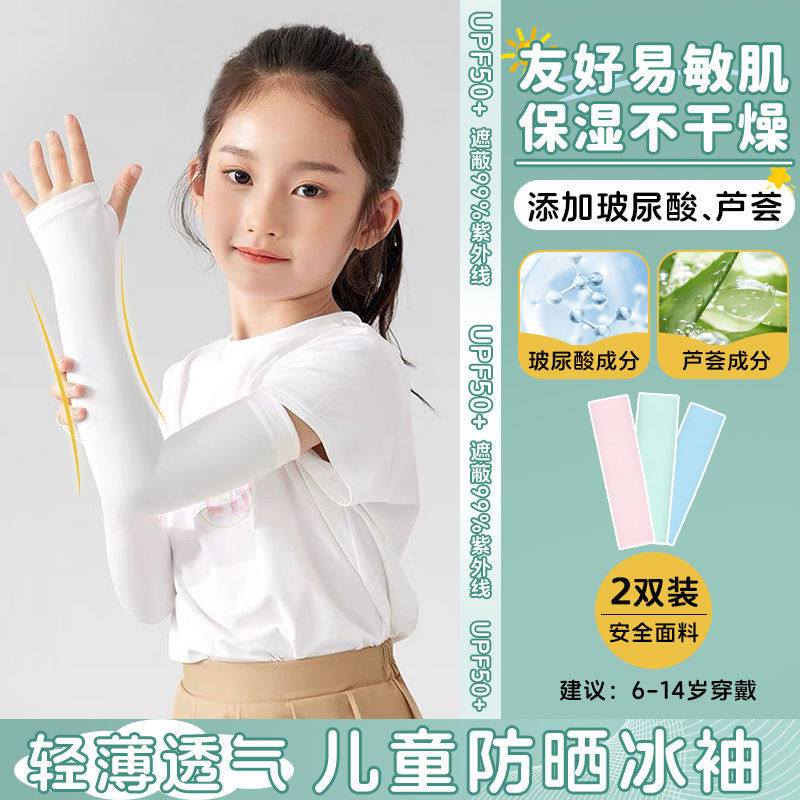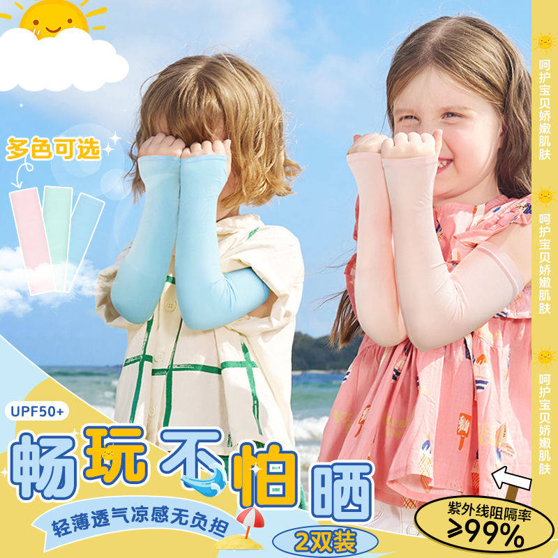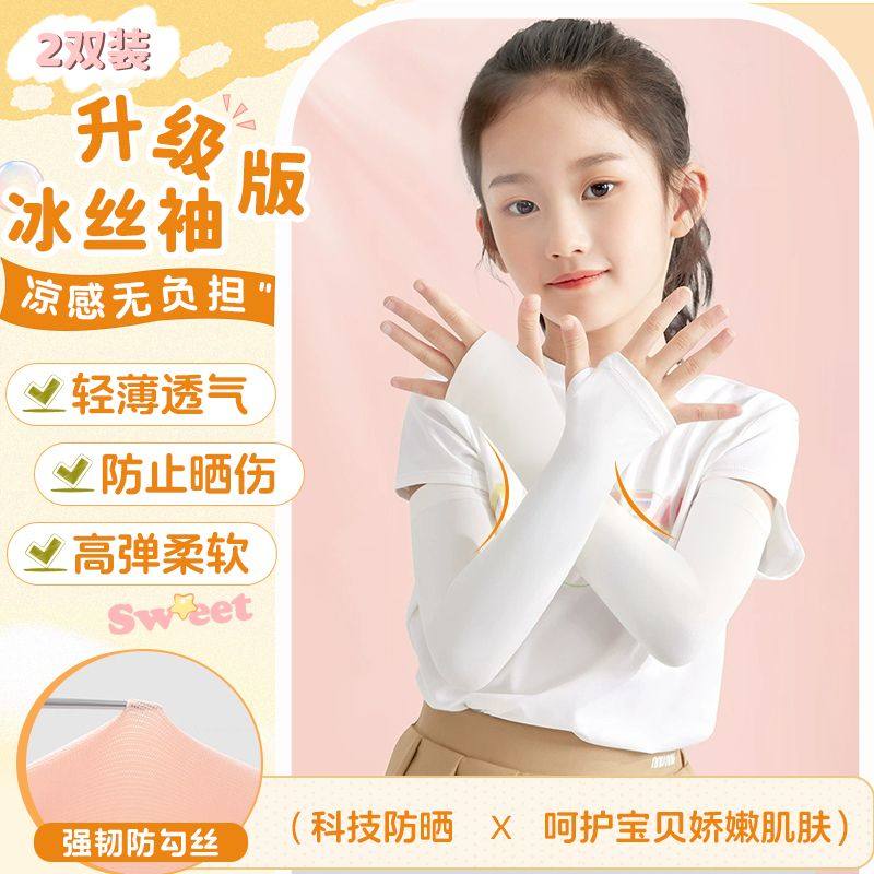套男女童防紫外线护手套 户外遮阳冰丝袖 巴拉妮琪夏季 儿童防晒冰袖
