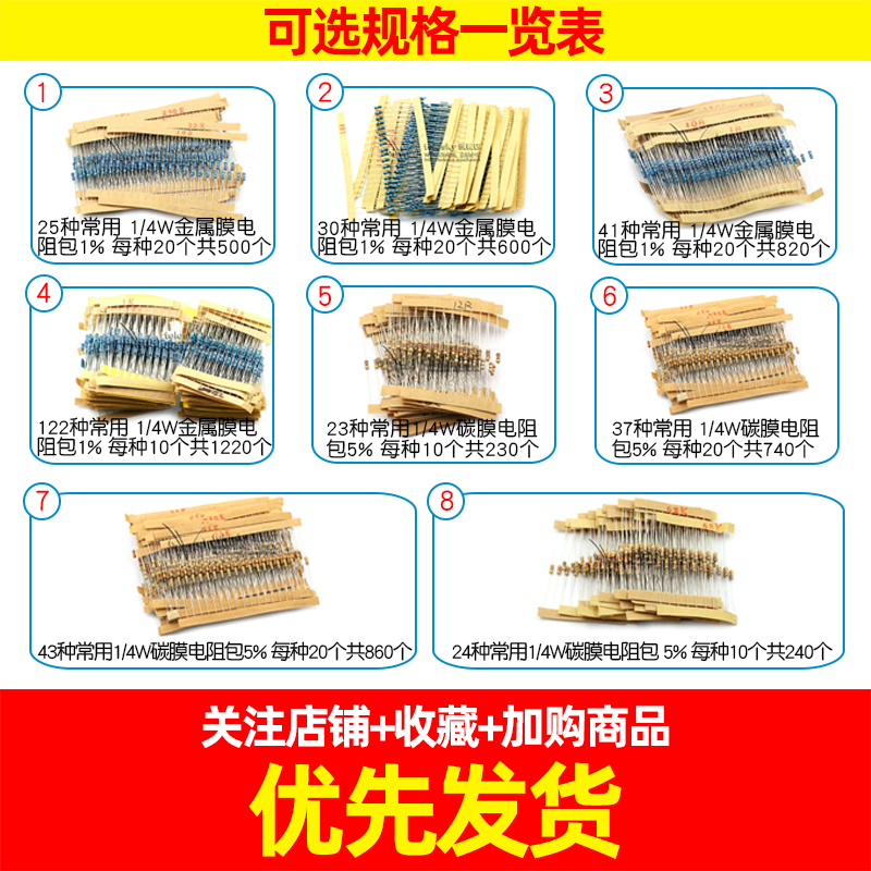 5000个一盒 五色环电阻器 1盒 0.25W 金属膜电阻