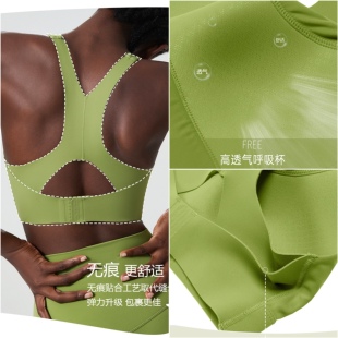 一体罩杯运动内衣女高强度防震调节扣无痕一片式 健身文胸瑜伽背心