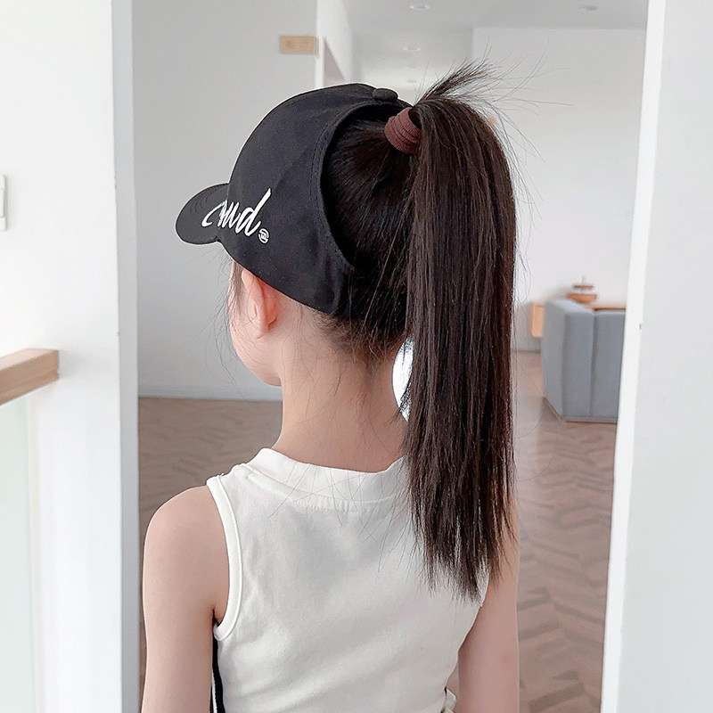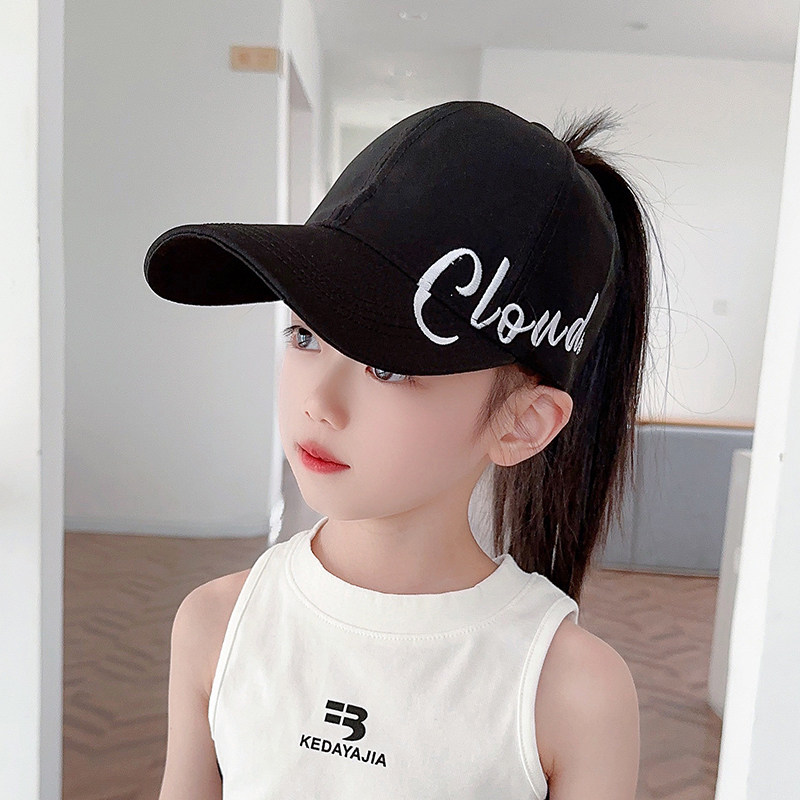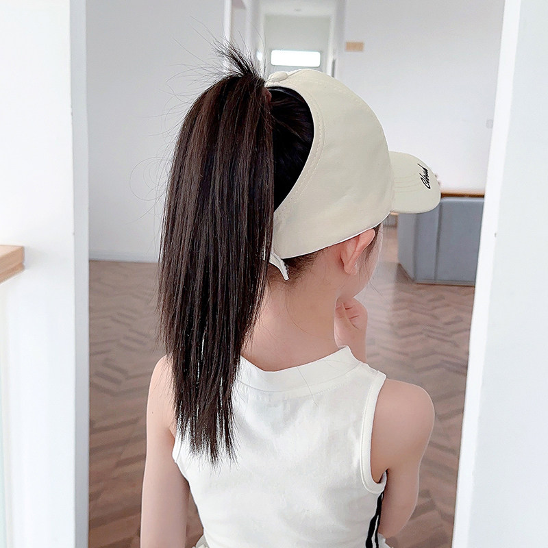 2024新款 户外大檐防晒帽 儿童马尾帽女童刺绣半空顶遮阳帽男童夏季