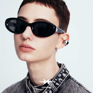 法式 防紫外线遮阳高级感防晒墨镜 椭圆形小框复古太阳眼镜女春夏季