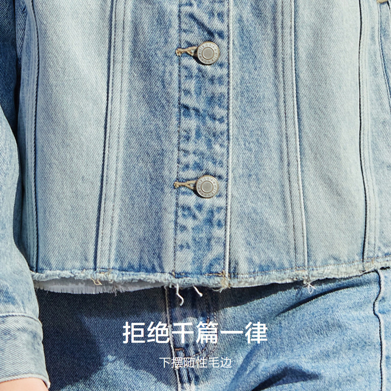 毛边2024春季 森马牛仔女短款 宽松夹克短外套甜美 商场同款 森柔