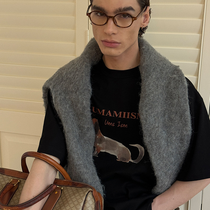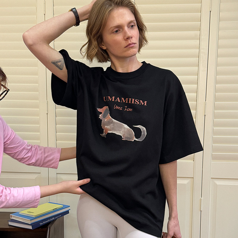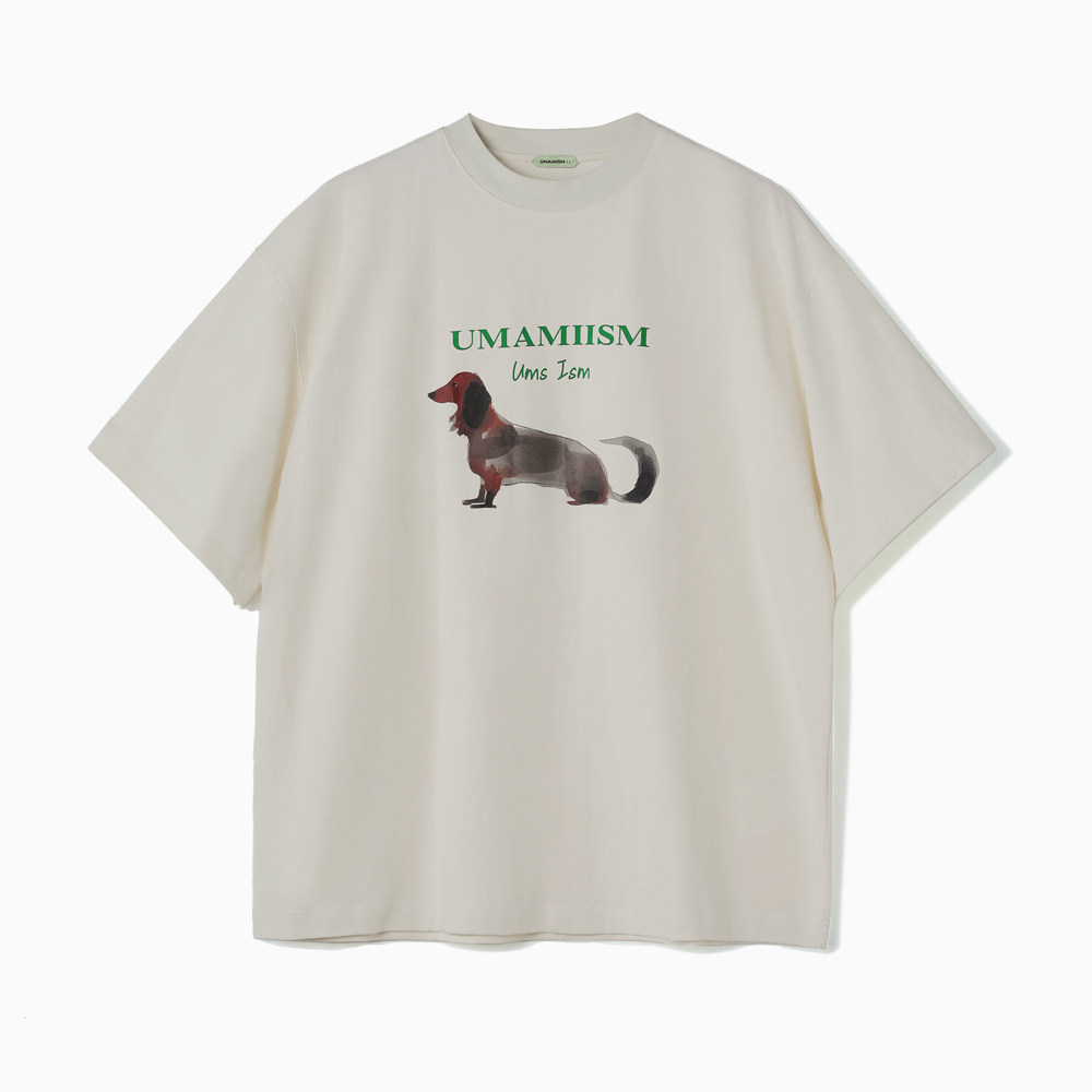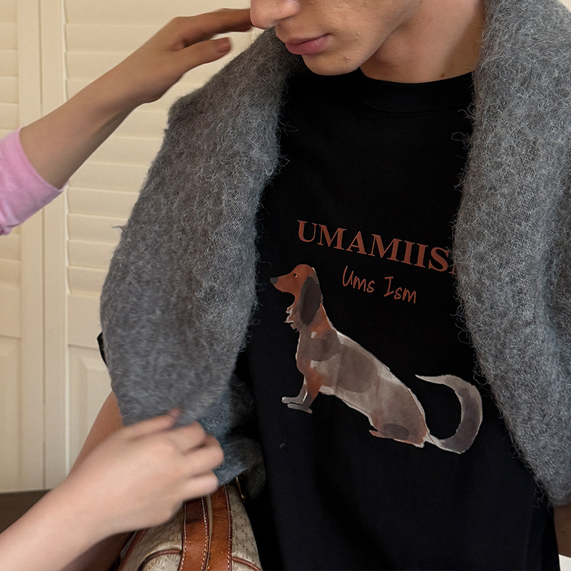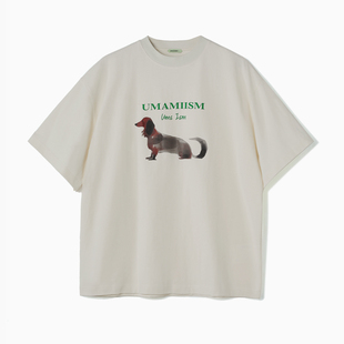 T恤上衣夏季 UMAMIISM 有茂密声复古趣味腊肠小狗圆领印花短袖