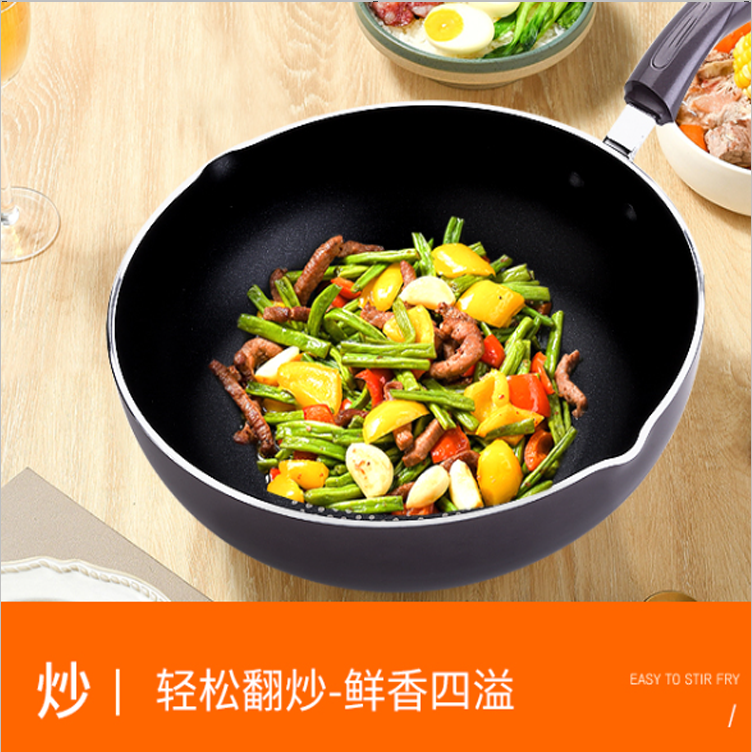 无涂层不粘锅家用炒锅轻量炒菜锅平底珐琅钛锅电磁炉燃气灶通用H