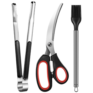厨房烤肉剪刀夹子套装 烤肉工具三件套空气炸锅食品夹烧烤工具用品